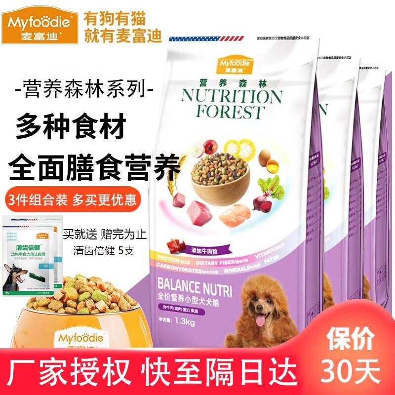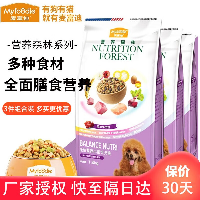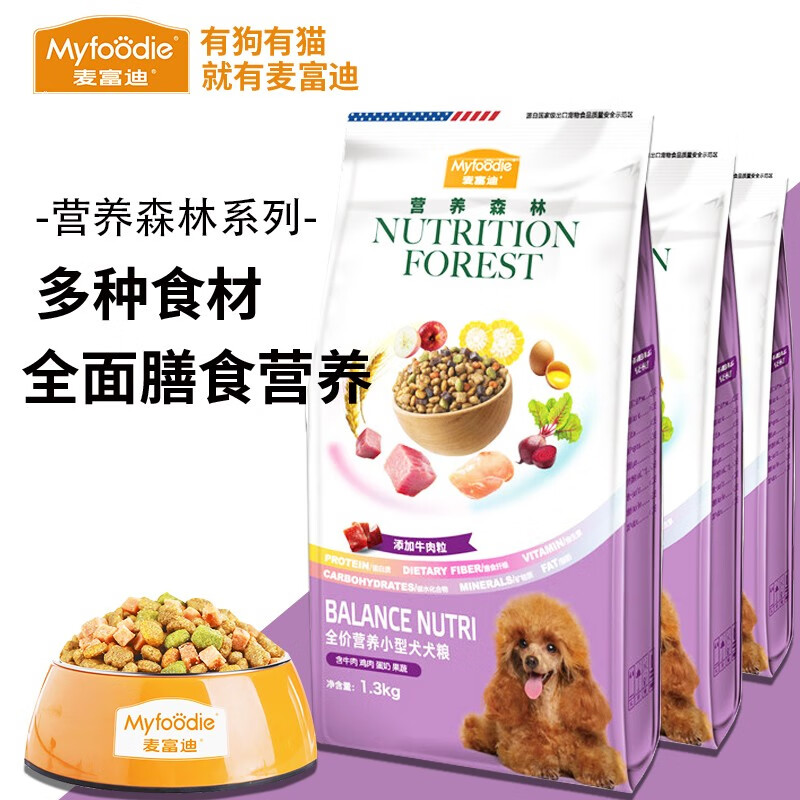 麦富迪(Myfoodie)狗粮 营养森林系列天然粮通用型全价犬主粮小型犬升级版成犬泰迪 小型犬全犬期2.6斤【3袋实惠装】