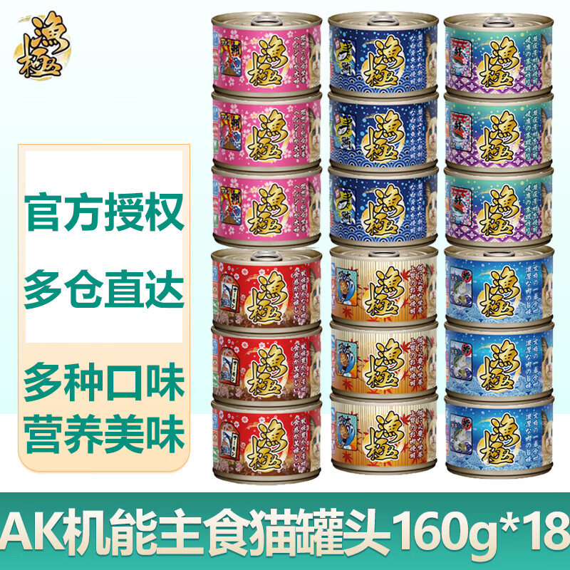 渔极猫罐头主食进口猫零食成猫湿粮幼猫罐头猫粮 多种口味混拼160g/罐*18