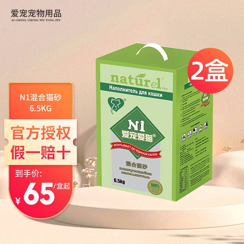 N1爱宠爱猫n1猫砂 6.5kg豆腐猫砂混合猫砂除臭无尘易结团可冲马桶猫沙豆腐砂 混合猫砂6.5kg*2盒(1.5mm颗粒)