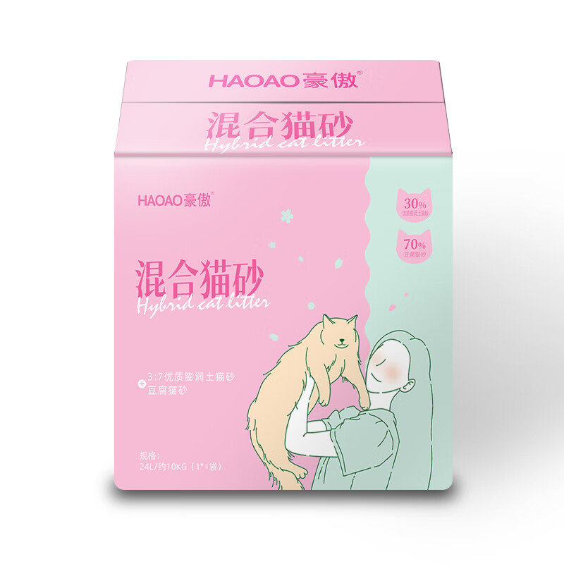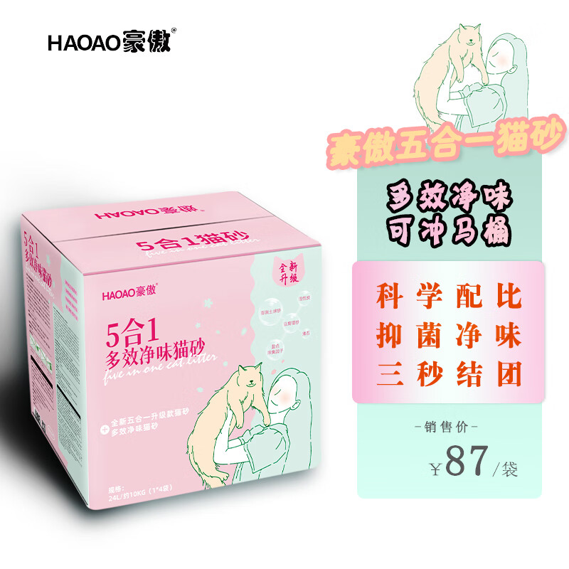豪傲原味五合一混合猫砂20斤膨润土猫砂可冲厕所除臭无尘结团吸水 粉红色 原味