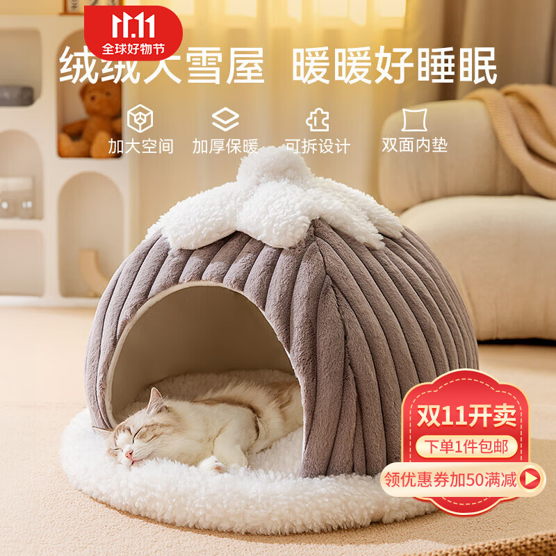 嬉皮狗(hipidog)猫窝封闭式冬季保暖猫屋四季通用冬天网红幼猫猫咪窝狗窝宠物用品 灰色 L(建议多只猫咪内)