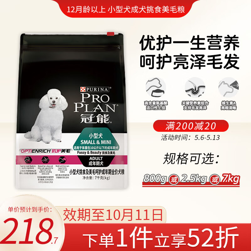 冠能(PRO PLAN)狗粮 小型犬狗粮奶糕 富含牛初乳柯基博美泰迪/临期 小型美毛7kg-有效期-10.11