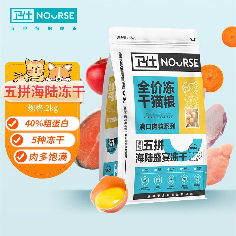 卫仕冻干猫粮全价无谷成猫粮幼猫 海陆盛宴鸡肉蛋白营养卫士猫粮 海陆盛宴2kg