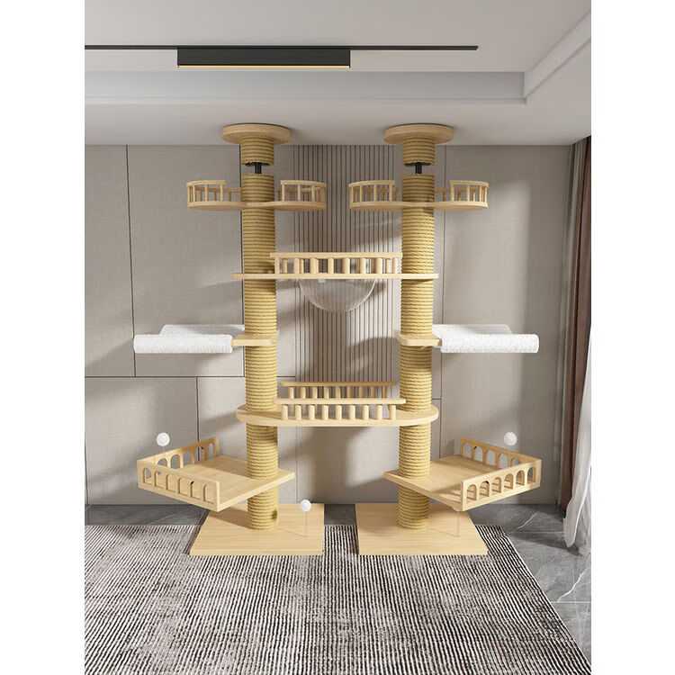 猫爬架通天柱飘窗实木不占地免打孔双柱大型猫顶天立地猫爬架多猫 套餐一下单备注房高