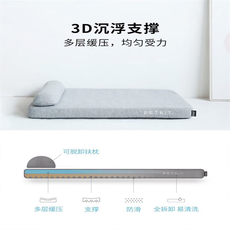 小佩深睡床垫 狗狗床冬季宠物床四季通用猫窝边牧小中大型犬拆洗 (灰色)多层缓压 高密记忆棉 \L-大型90*70*16cm