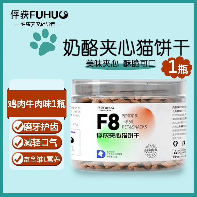 俘获F8夹心小猫饼干营养酥脆小猫磨牙棒成幼猫粮饭伴侣护齿磨牙牛磺酸美味零食 鸡肉牛肉味*1瓶装