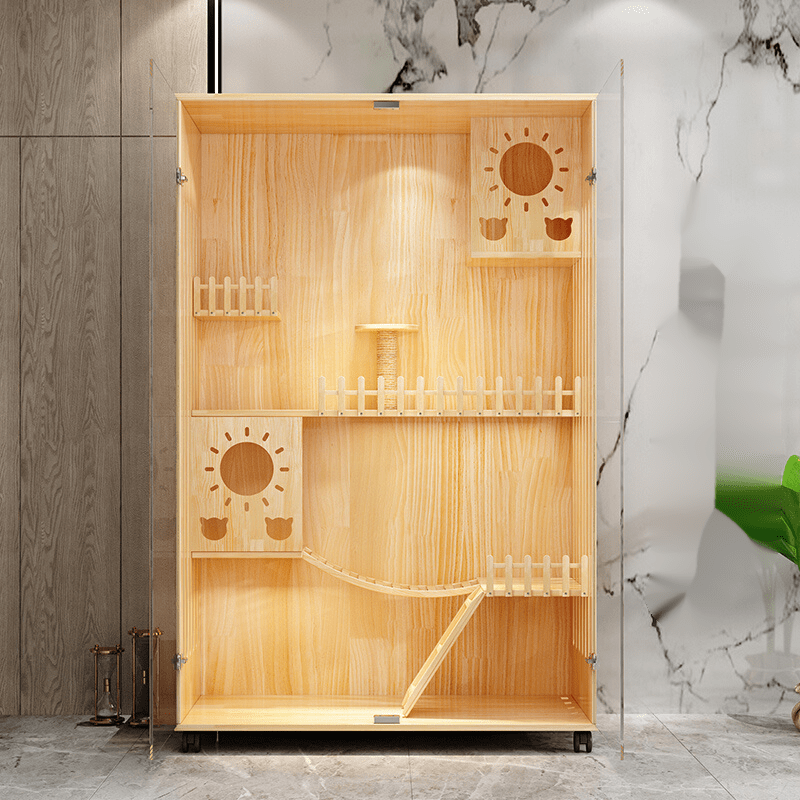 小米城堡 猫柜猫别墅 家用木质全景超大号自由豪华猫笼子猫柜室猫窝笼猫舍 60*60*120款 配货上门-自行安装