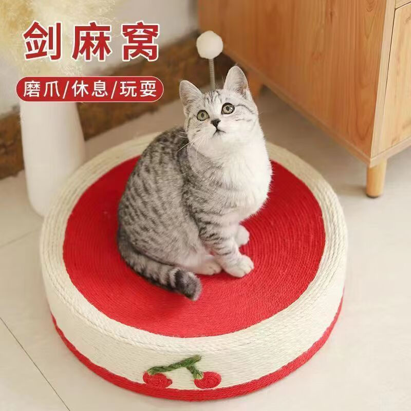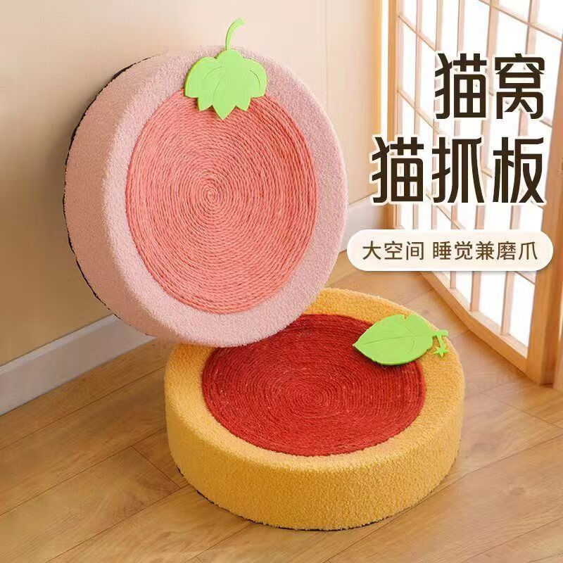 鼥拉猪剑麻猫抓板耐磨非不掉屑猫抓窝盆一体猫爪盆大号圆形猫咪玩具磨爪 蜜桃[40*40*10]