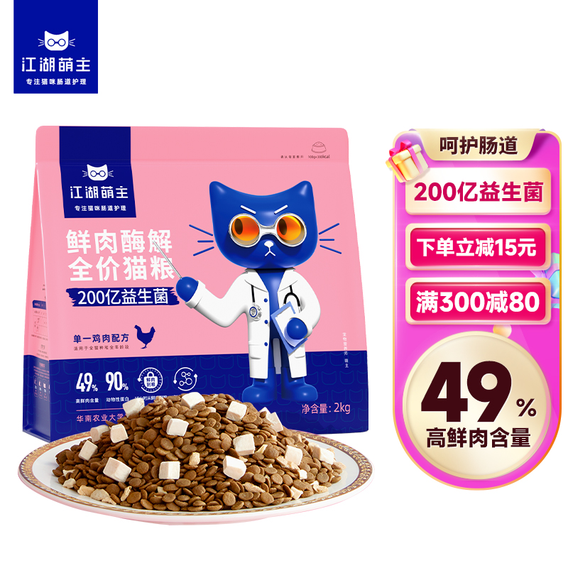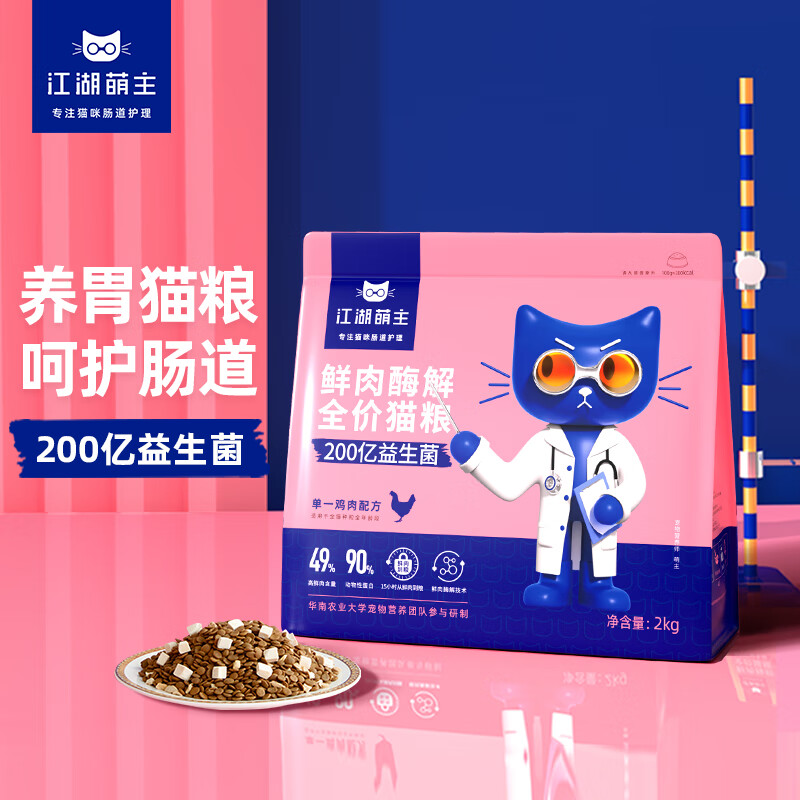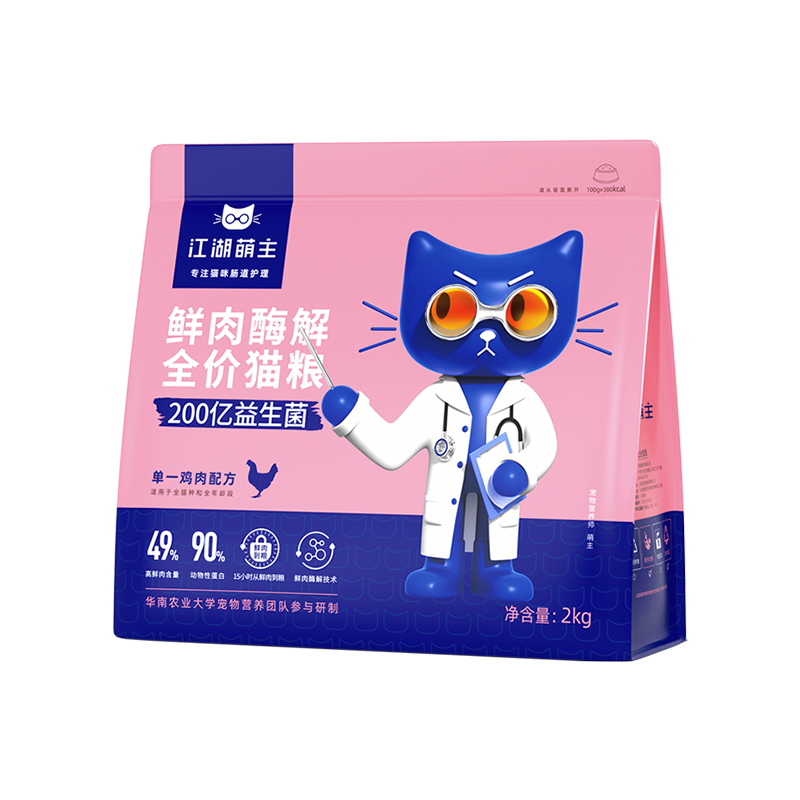 江湖萌主鲜肉酶解全价猫粮单一鸡肉配方2kg成猫布偶英短无谷冻干天然粮