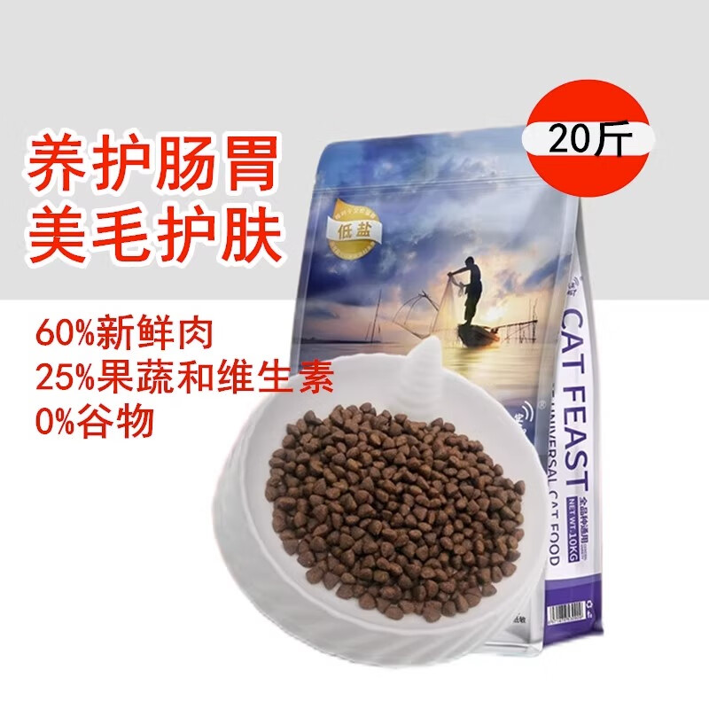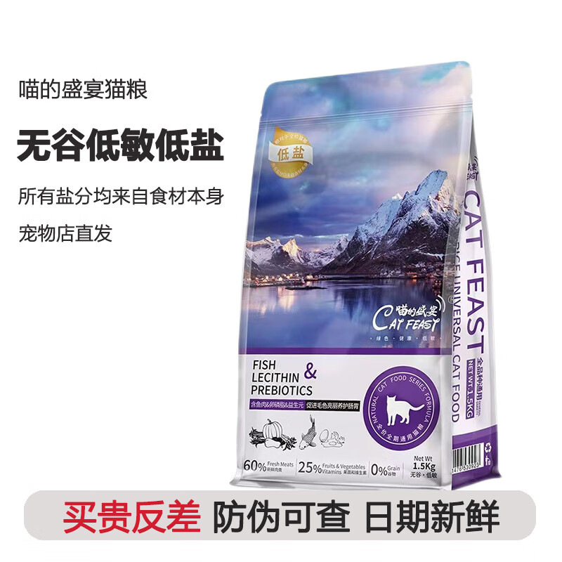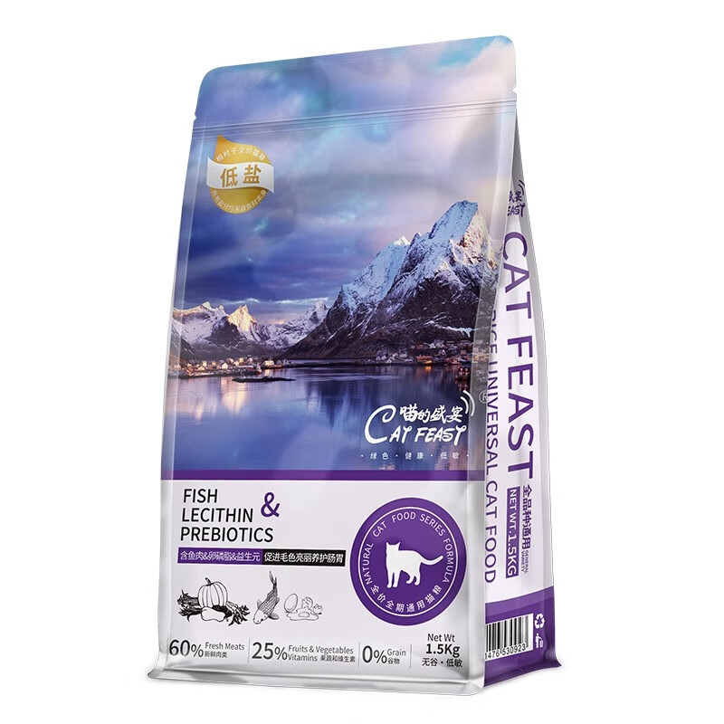 心粮喵的盛宴猫粮蓝白幼成猫咪全阶段增肥发腮天然无谷低盐营养粮 全价猫粮1.5kg