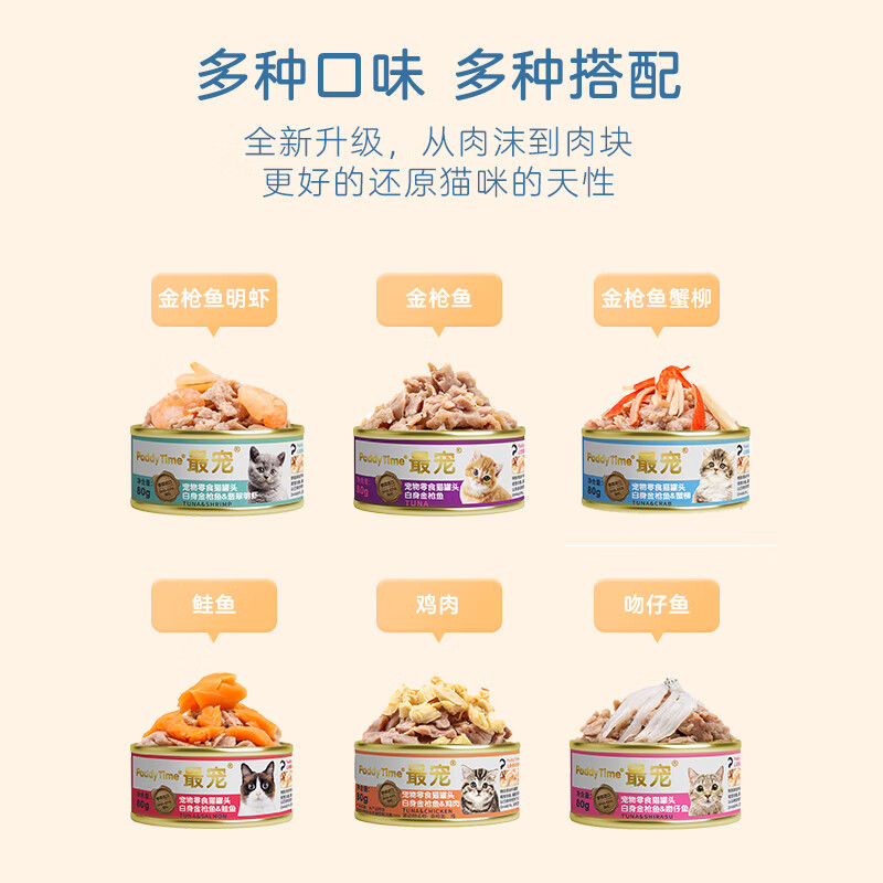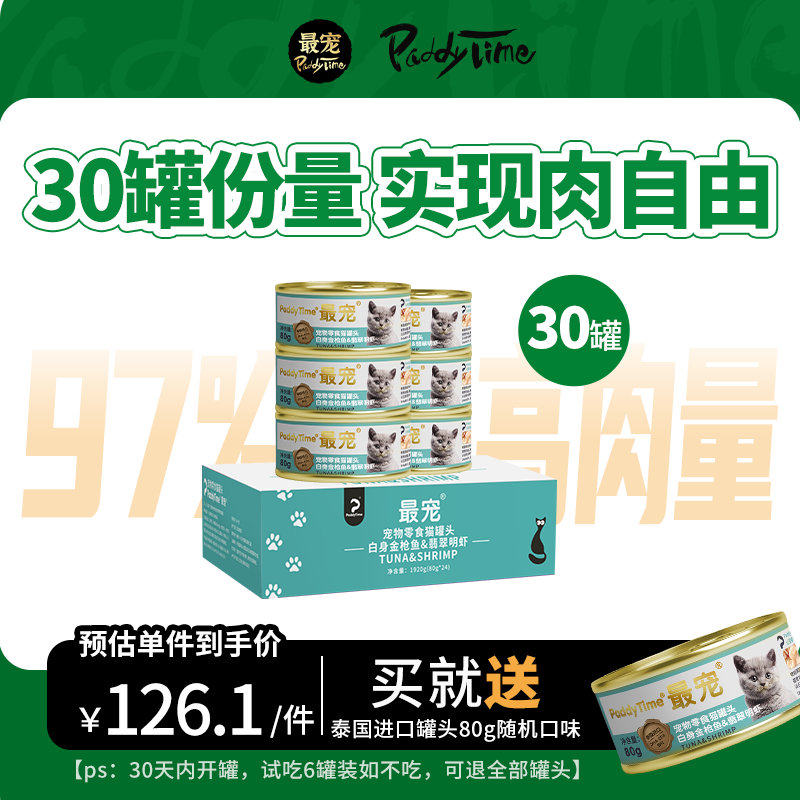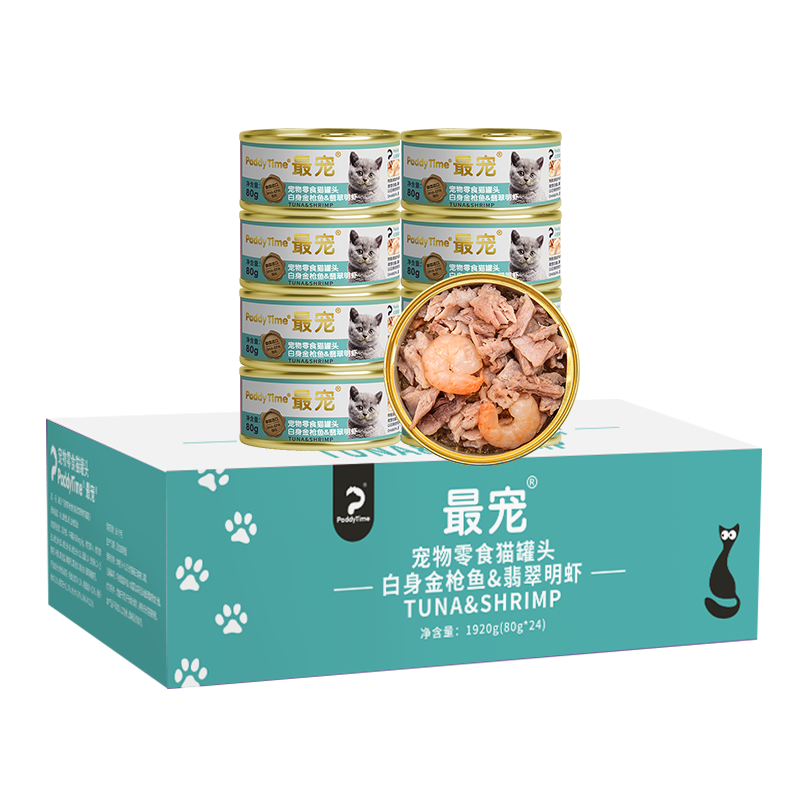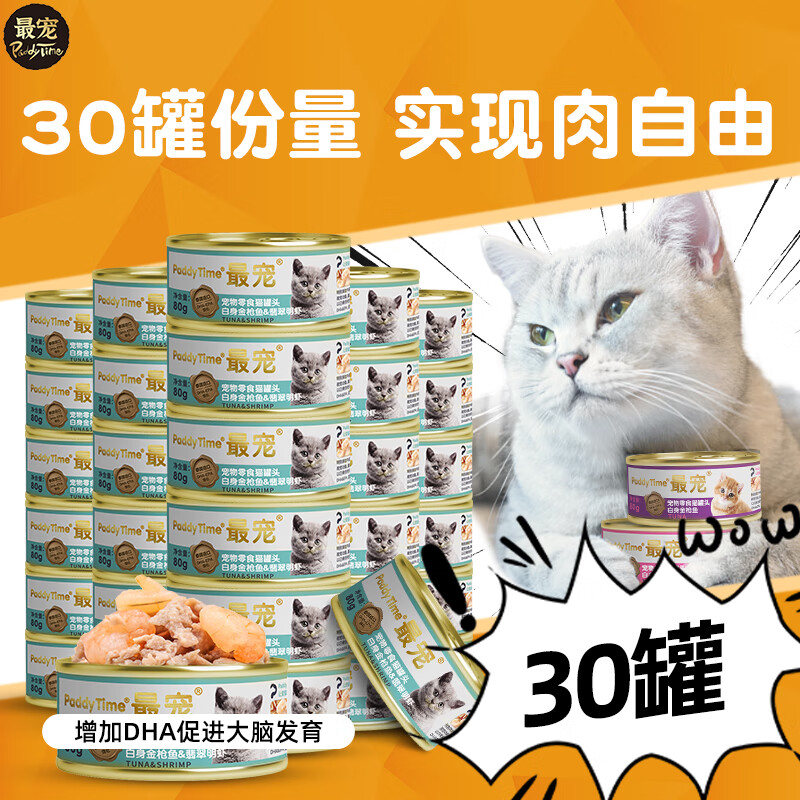 最宠(Paddy Time)猫罐头 泰国进口猫罐头12罐装白肉宠物猫粮湿粮成猫幼猫咪零食 金枪鱼 翡翠明虾80g*30罐装