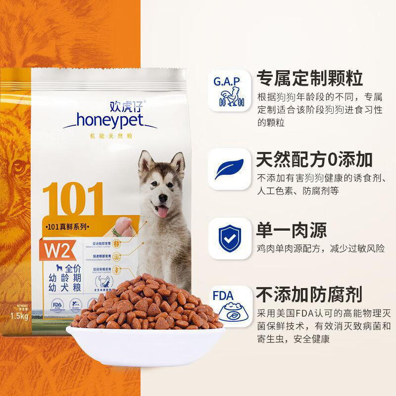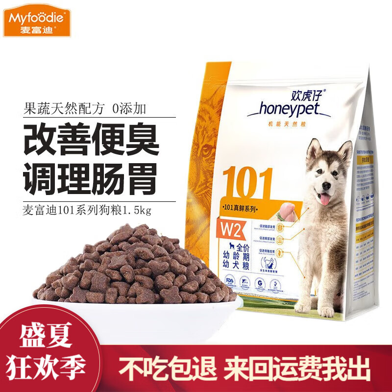 麦富迪(Myfoodie)麦富迪(MYFOODIE)欢虎仔101狗粮增肥成幼犬粮泰迪金毛拉布拉比 101通用幼狗粮1.5kg