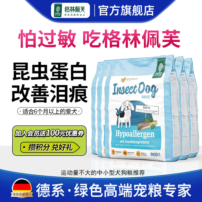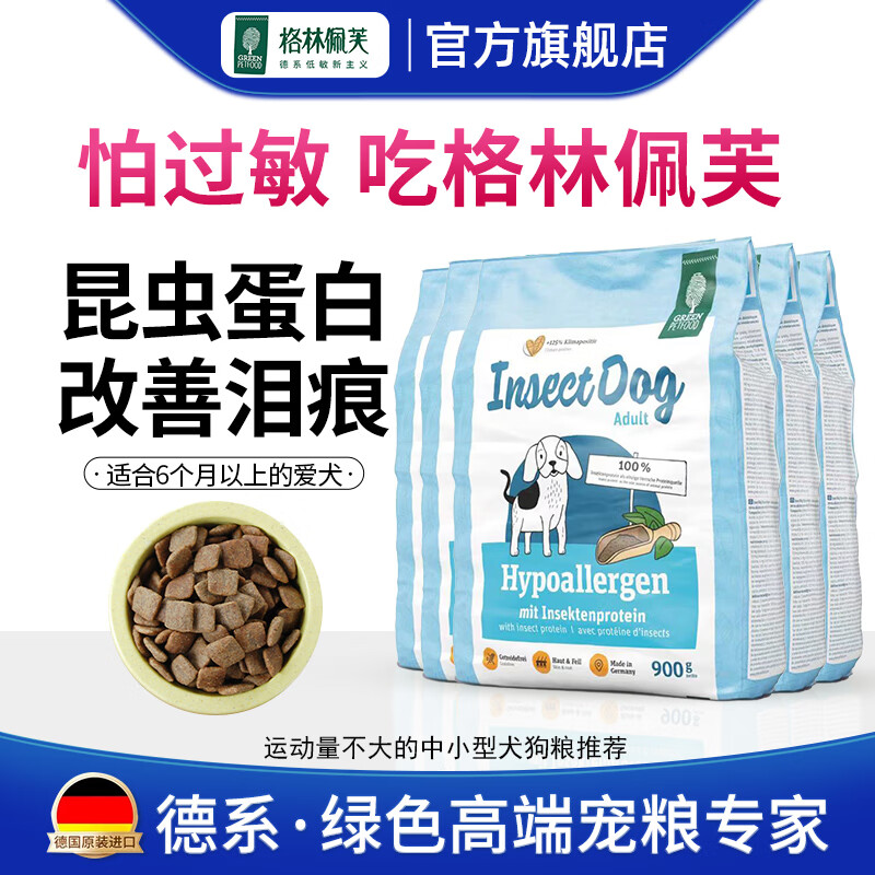 格林佩芙德国进口低敏狗粮昆虫蛋白无谷狗粮10公斤900克成犬粮过敏处方粮 昆虫蛋白低敏(5*900克) 900g