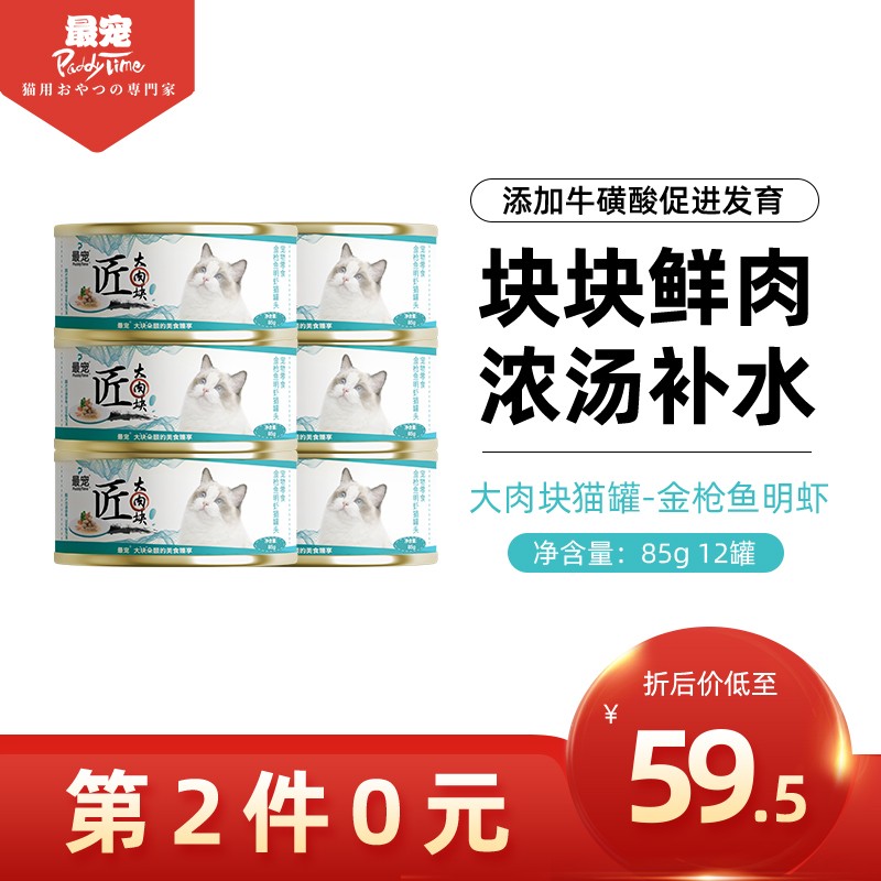 澳洲品牌 最宠 (Paddy Time)猫罐头 宠物零食罐猫粮猫湿粮成幼猫咪增肥营养汤罐发腮多口味 金枪鱼明虾汤罐85g*12