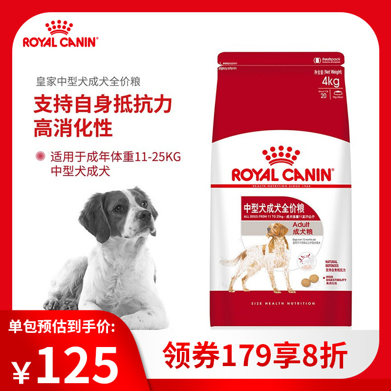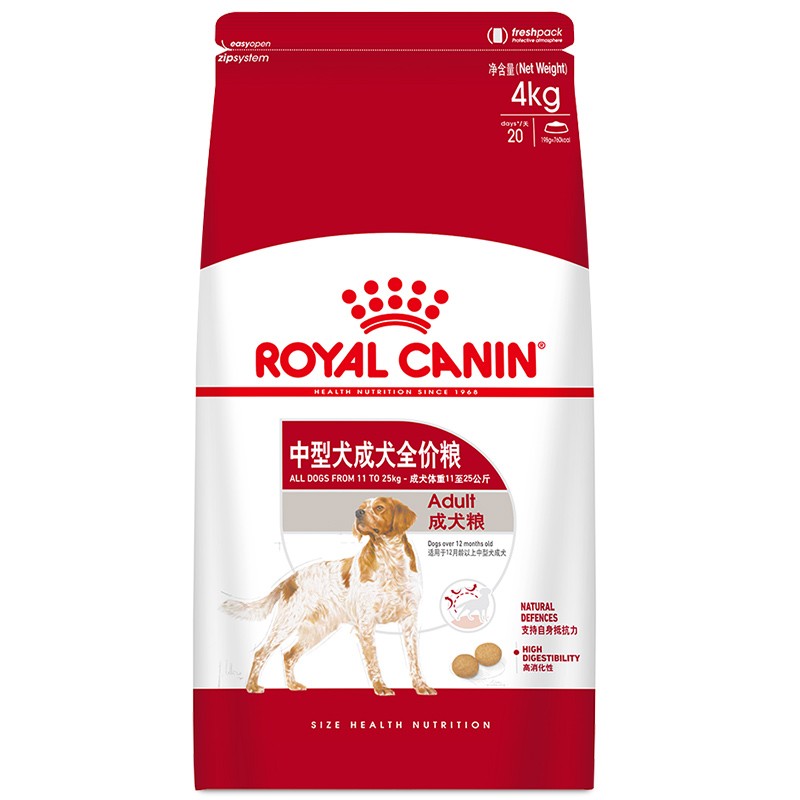 【自营时效】ROYAL CANIN 皇家品牌 M25中型犬12月 成犬通用 全价狗干粮 【正装 I 约20天餐量】4kg 12月龄以上