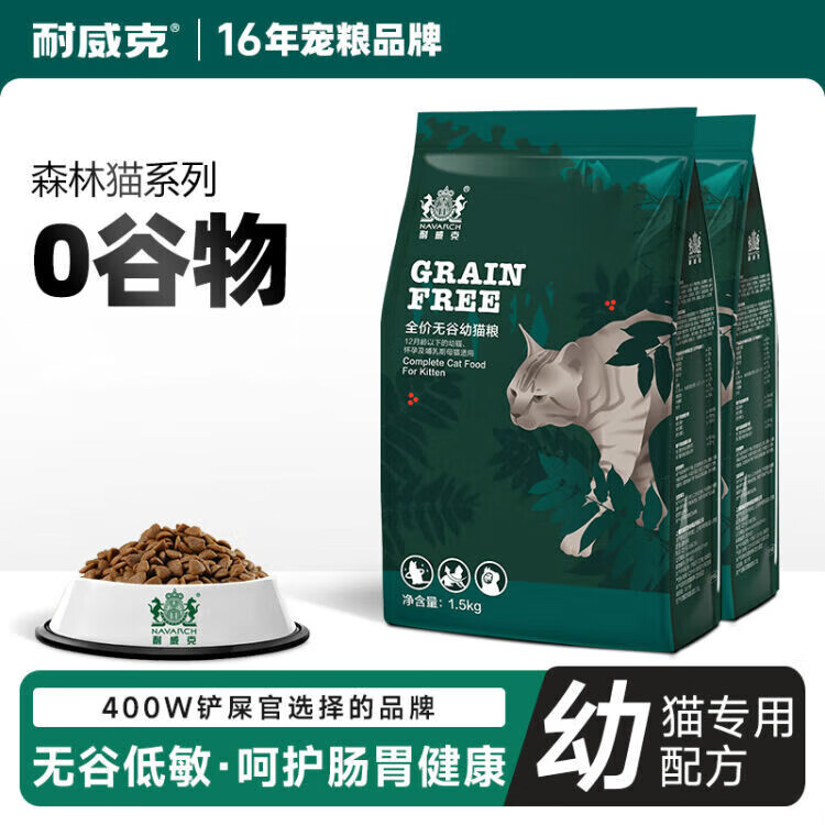 耐威克猫粮 幼猫无谷猫粮3kg无谷低敏配方 添加牛初乳 全价天然粮 幼猫粮 3kg