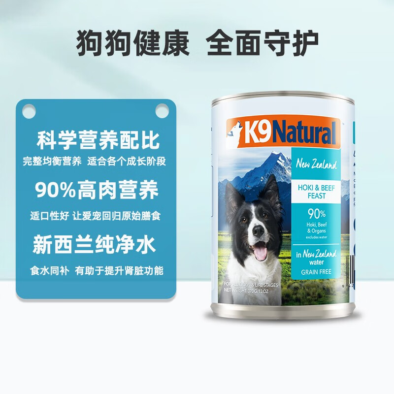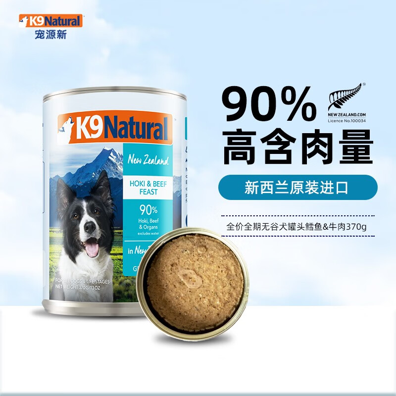 【顺丰发货】K9Natural 新西兰原装进口狗罐头 成犬幼犬通用主食罐头 牛肉鳕鱼370g