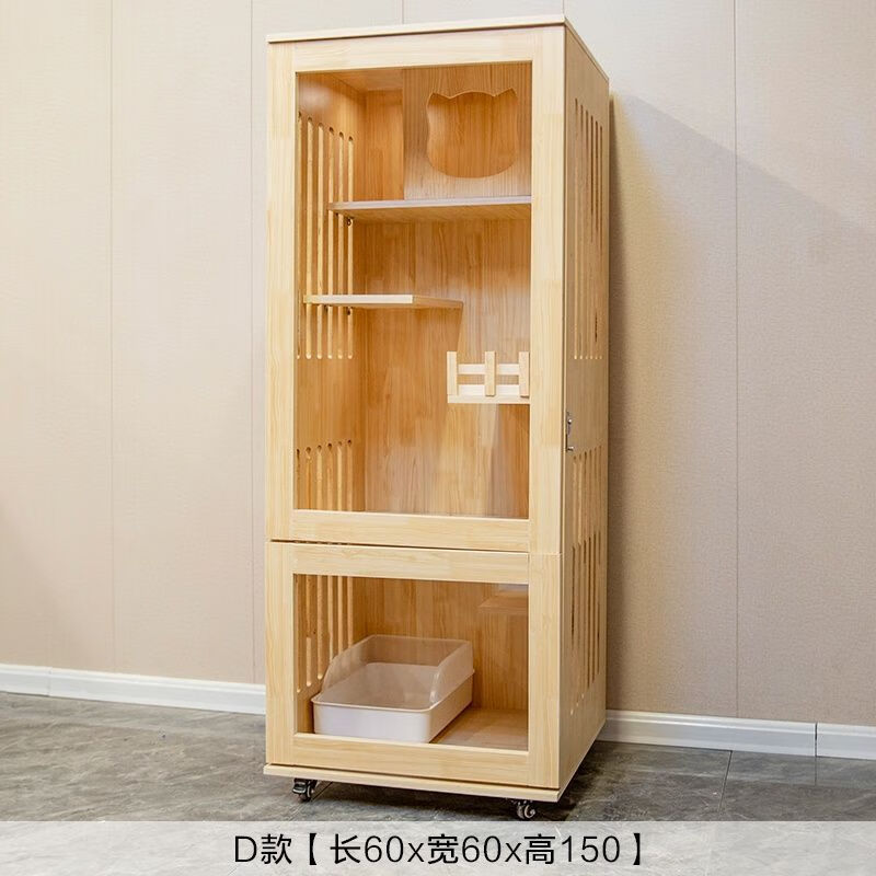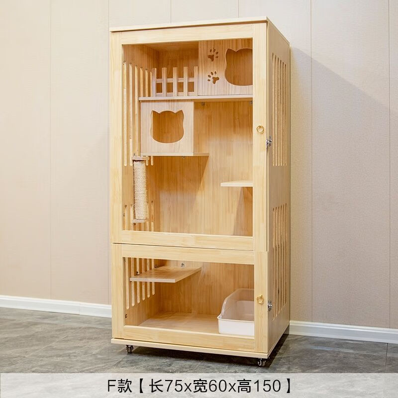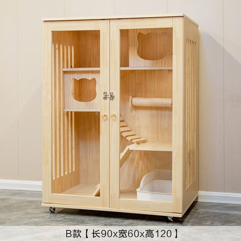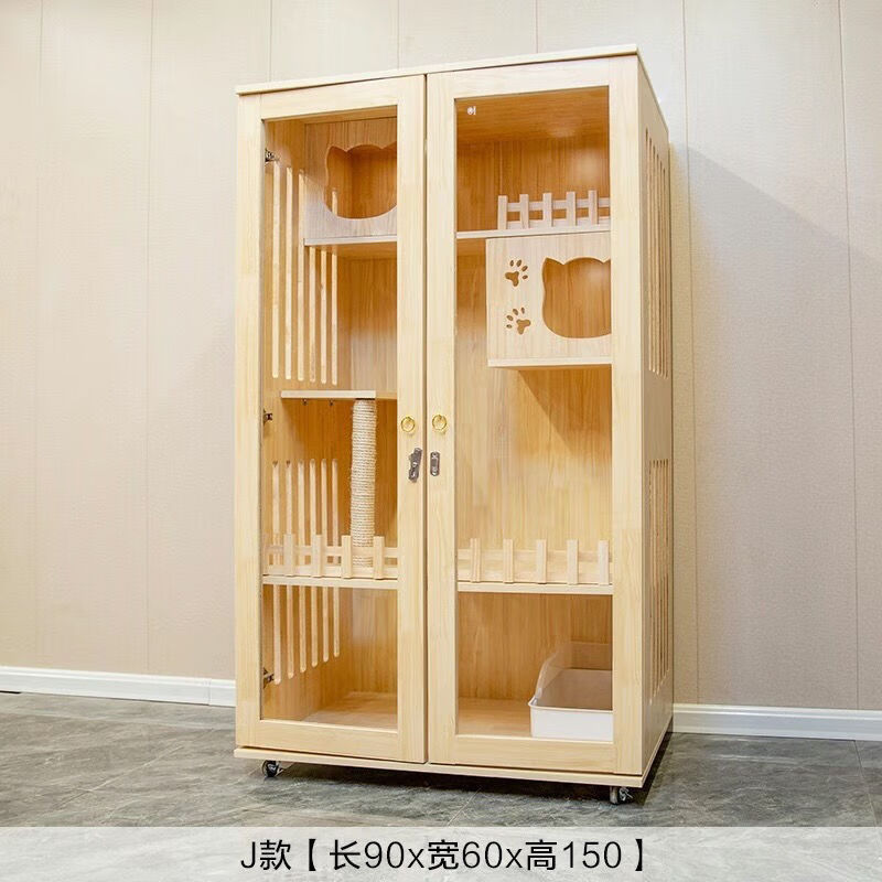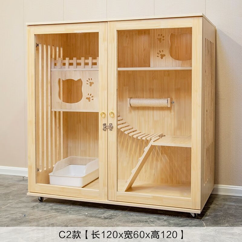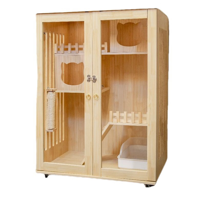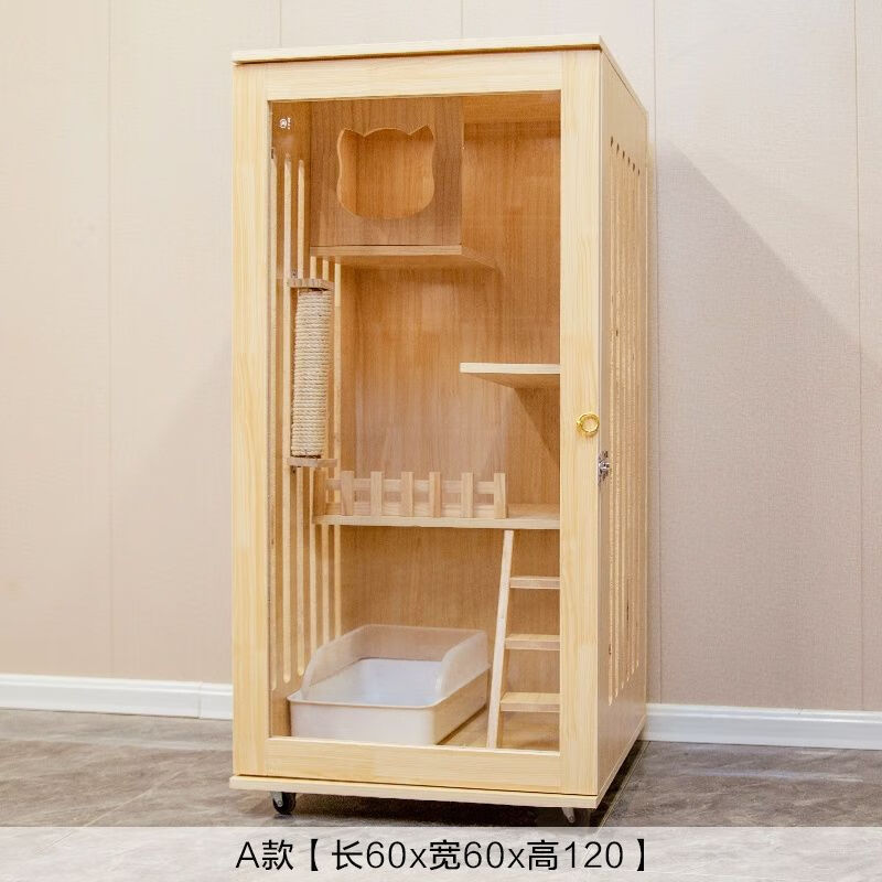 小米城堡 猫笼别墅猫咪木质笼子 豪华双层三层家用柜大自由空间大号屋 A款 长60*宽60*高120CM 师傅上门安装