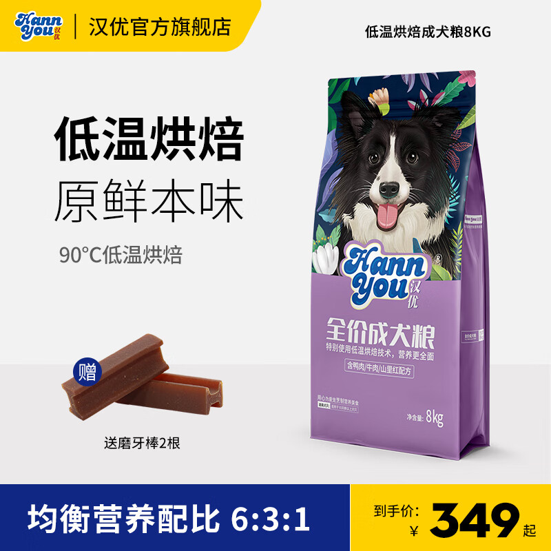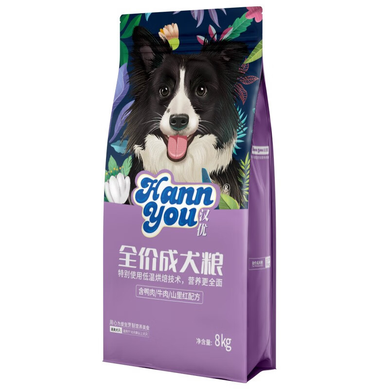 汉优 低温烘培成犬狗粮 泰迪柯基拉布拉多金毛法斗比熊全犬种全价狗粮 8kg