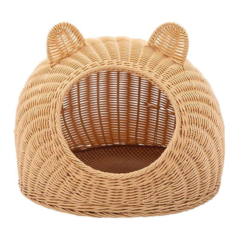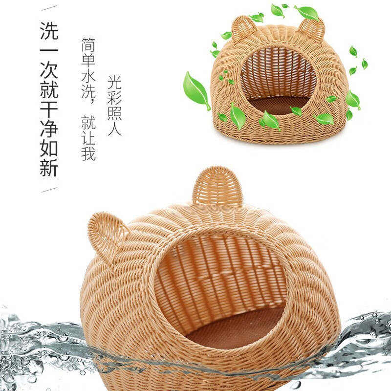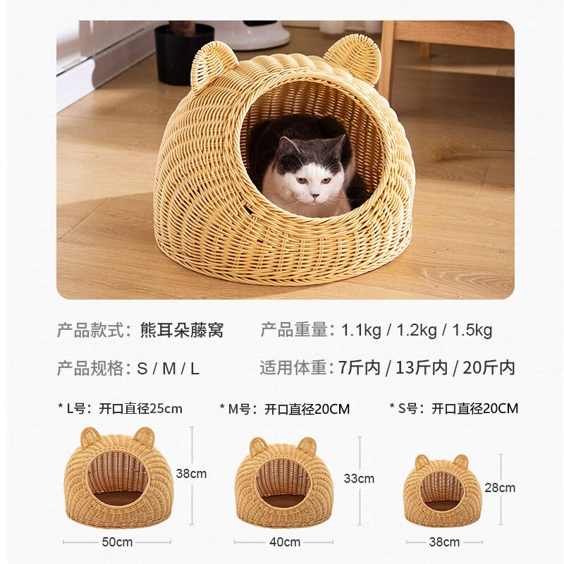疯狂小狗 猫窝藤编竹编冬季保暖狗窝四季通用房子别墅床封闭式猫帐篷猫咪窝 中号