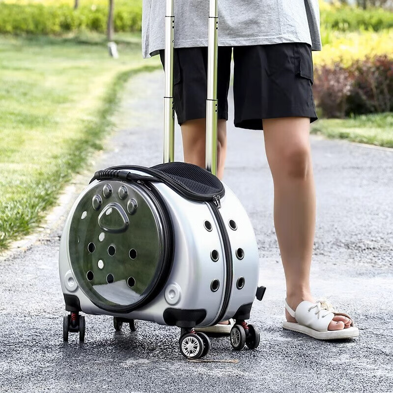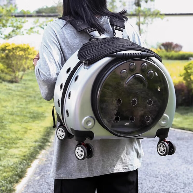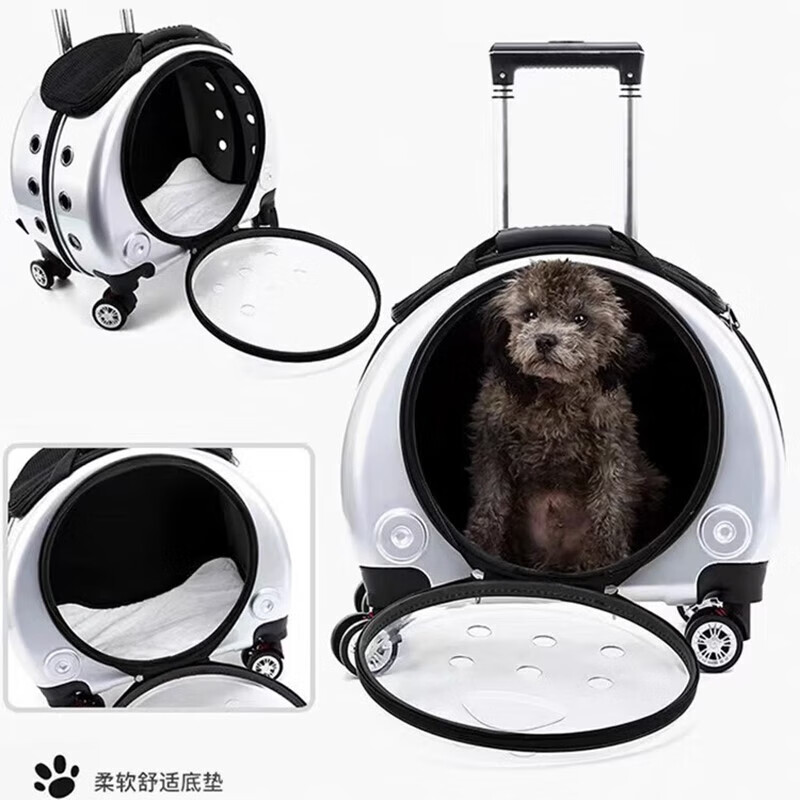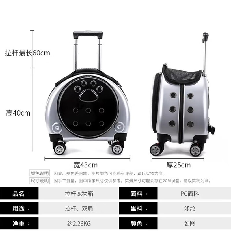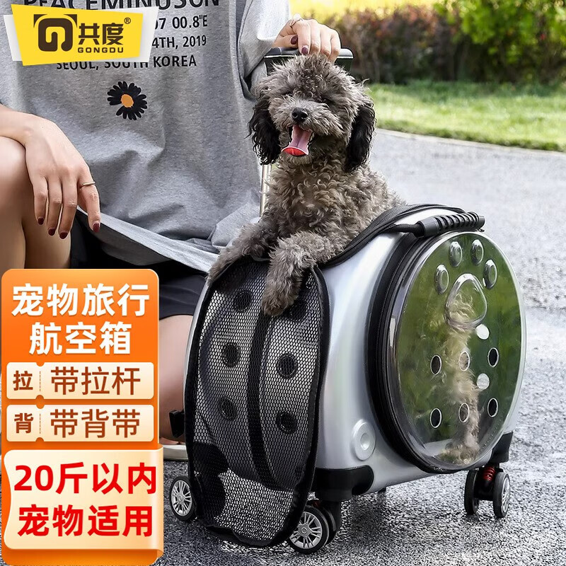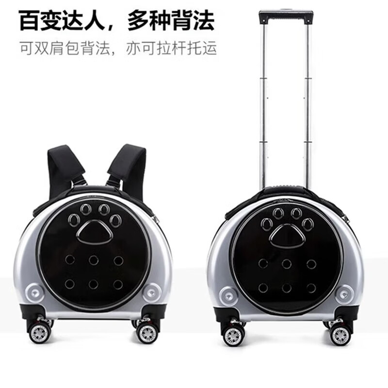 共度(Gong Du)宠物拉杆箱猫包外出便携猫咪行李箱透明大号猫咪小推车狗狗太空舱 银色【拉杆 双肩背】