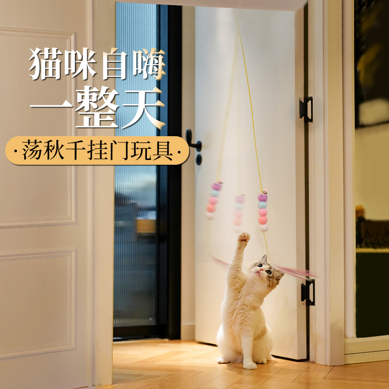 hoopet逗猫棒猫咪荡秋千挂门猫玩具自嗨解闷神器小猫幼猫自娱自乐超长挂门式昆虫猫逗棒布偶猫玩具弹力 响纸毛毛虫-挂门自嗨玩具