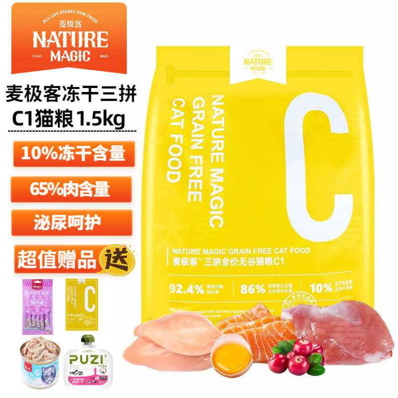 麦极客冻干生骨肉三拼全价无谷猫粮冻干蛋黄成猫美短英短通用天然粮 c1猫粮1.5kg