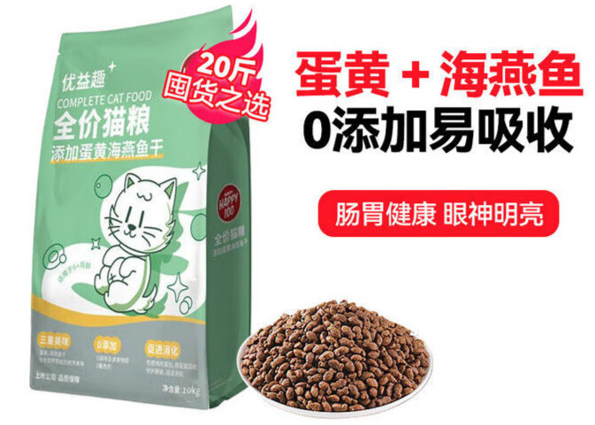 顽皮优益趣20斤全价猫粮冻干成幼猫全阶段猫咪增肥猫粮大袋 添加蛋黄海燕鱼干10kg 单袋尝鲜