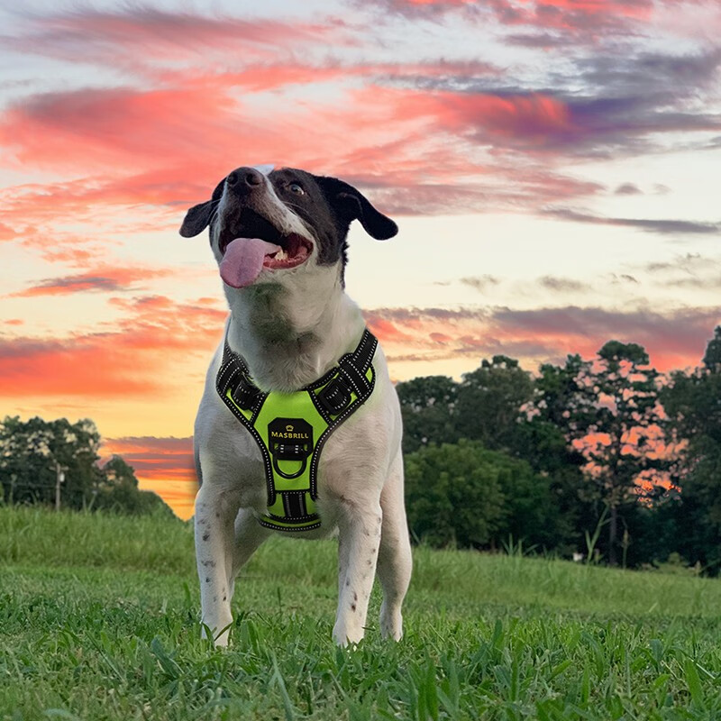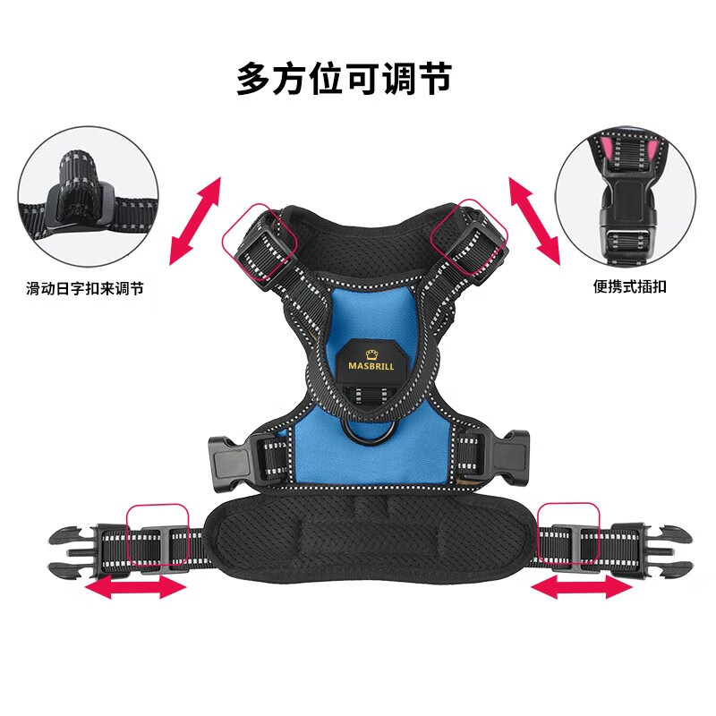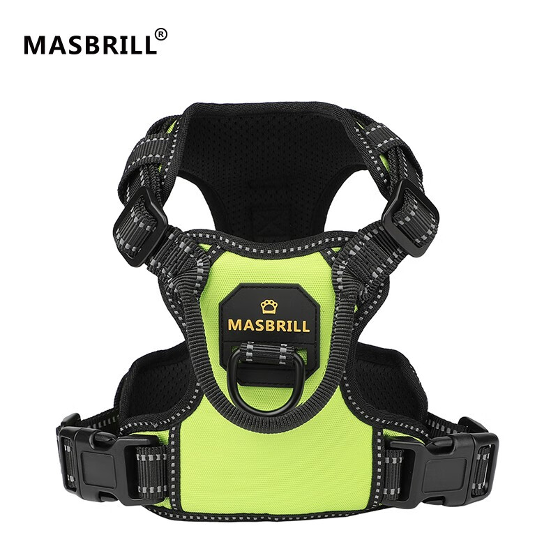 玛思贝瑞(MASBRILL)狗狗胸背带 可调节松紧背心式狗绳牵引绳 小大型犬金毛柴犬泰迪拉布拉多 绿色 S 适用胸围50-68cm