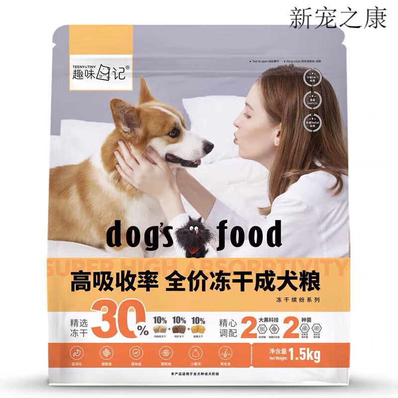新宠之康趣W日记无谷40%冻干易消化全期犬粮30%冻干全价幼犬成犬粮1.5kg 成犬30%冻干添加 1.5kg/袋
