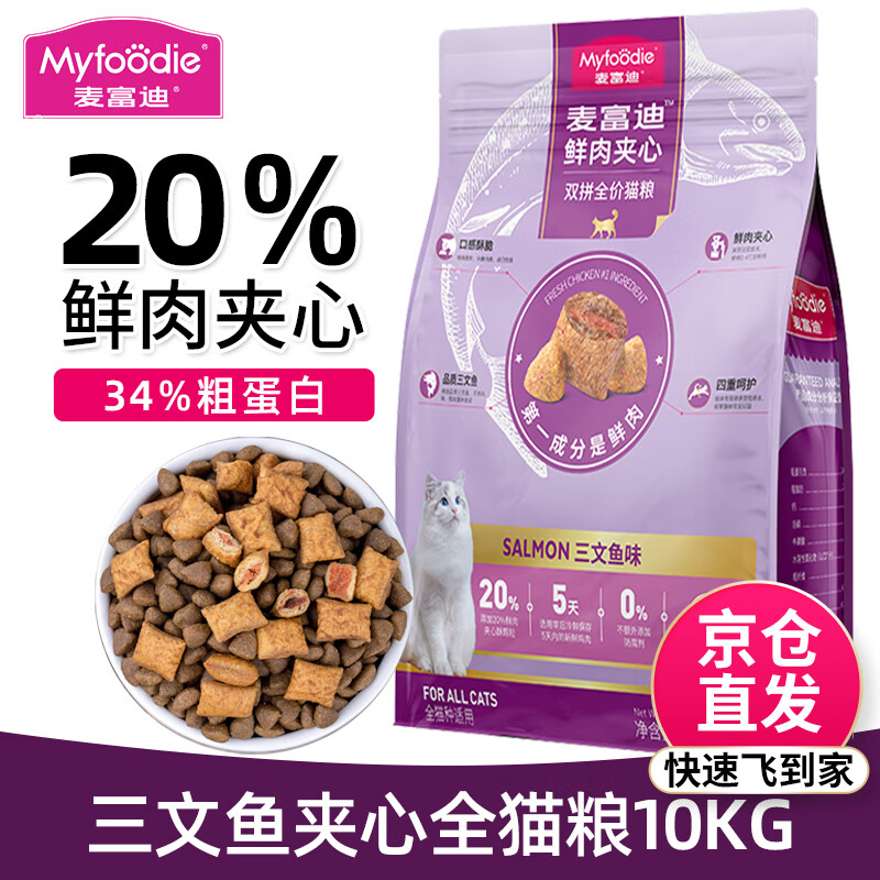 麦富迪猫粮 三文鱼鲜肉夹心全猫粮10kg 三文鱼夹心全猫粮10kg 粮10kg