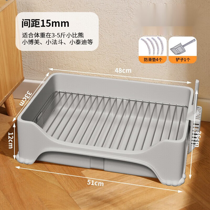 凡佰酷狗狗厕所中小型犬专用尿盆防踩屎不锈钢狗砂盆小狗大小便拉屎神器 绅士灰15mm3-5斤含铲子