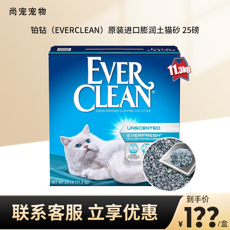 铂钻(EverClean)猫砂25磅 原装进口膨润土猫砂混合猫砂猫沙矿砂 除臭无尘易结团 【强力除臭】蓝标 25磅