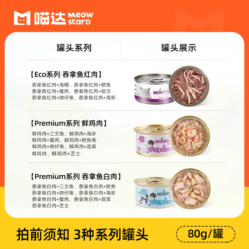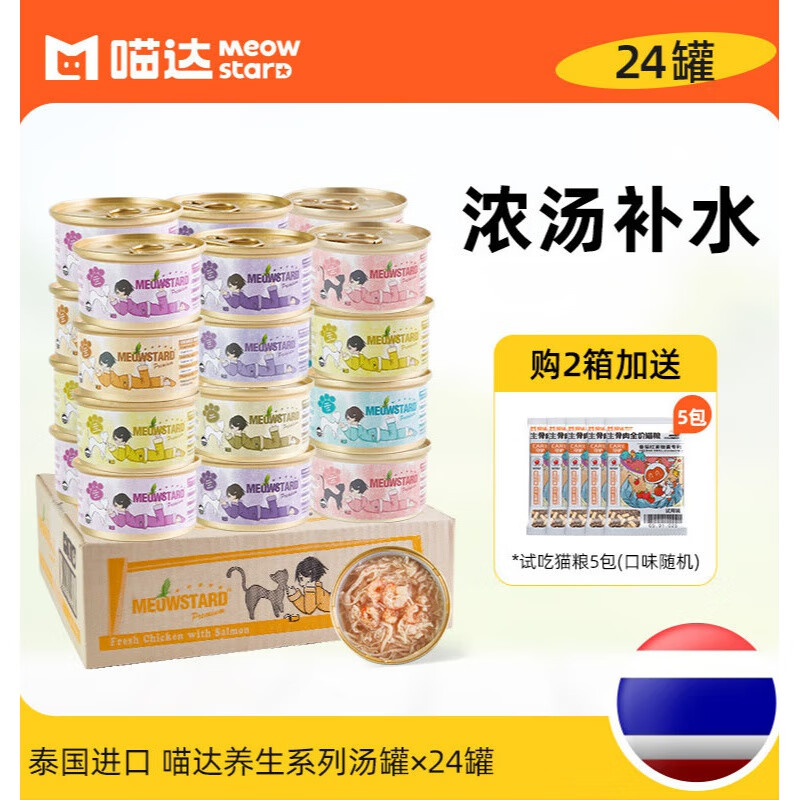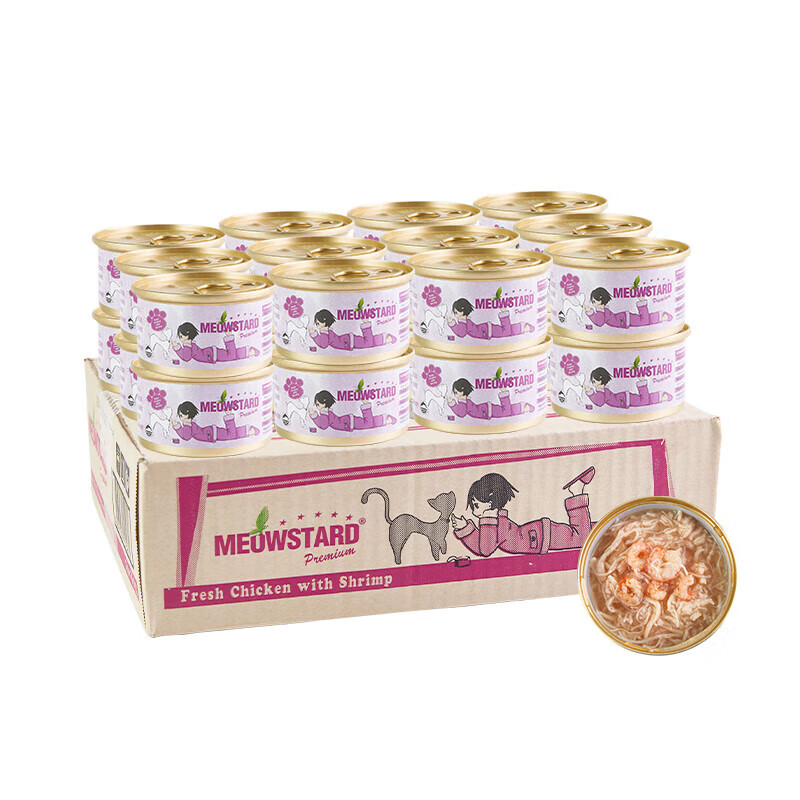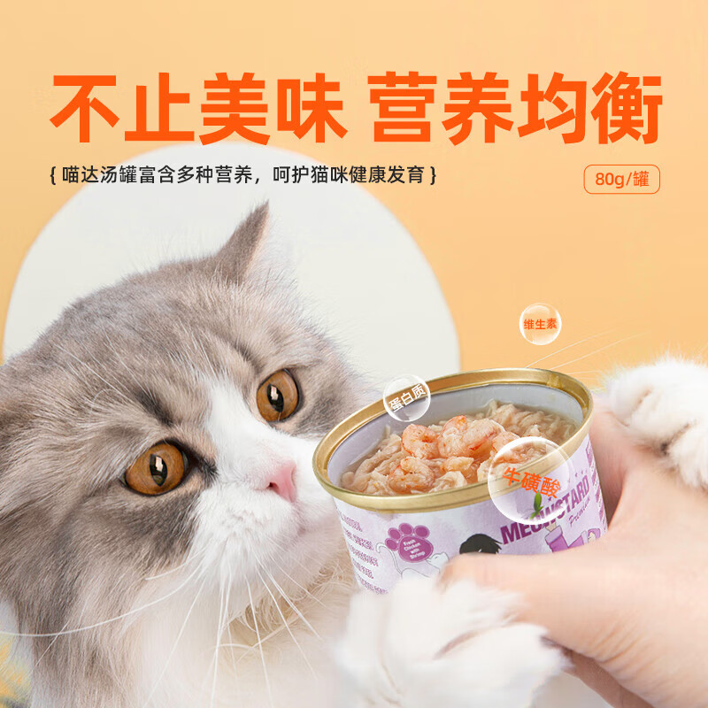 喵达(Meowstard)泰国进口喵达猫罐头鸡肉吞拿鱼补水营养汤罐零食整箱成幼猫发腮 鲜嫩鸡肉 海虾*24罐 80g 以sku的重量为准