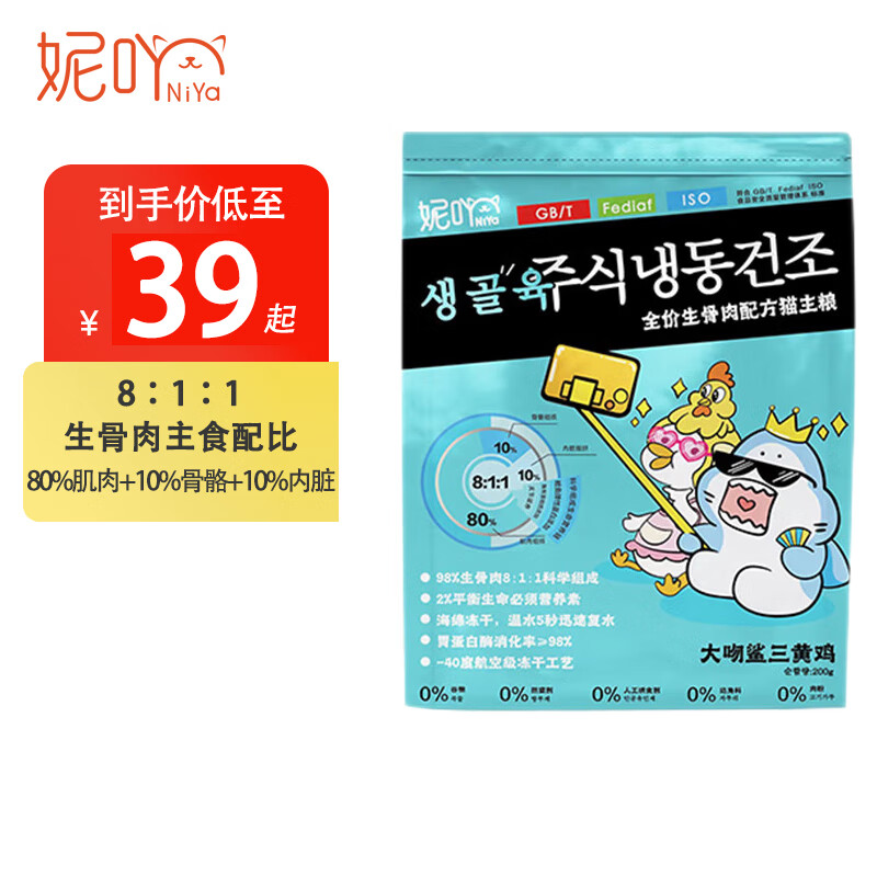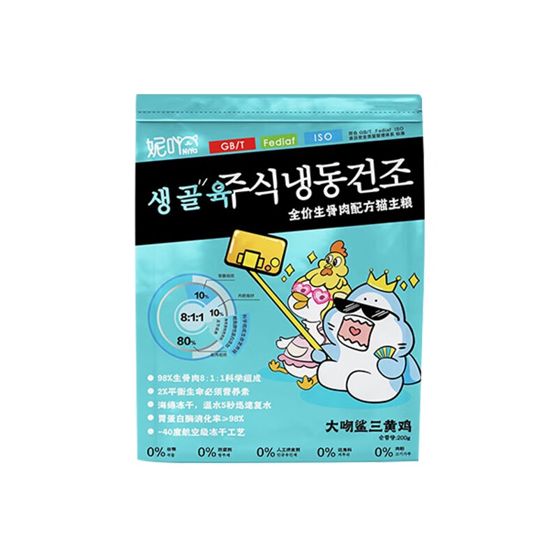 妮吖冻干全价生骨肉冻干猫主粮主食冻干猫零食猫粮营养增肥主食冻干 【袋装】大吻鲨三黄鸡 200g