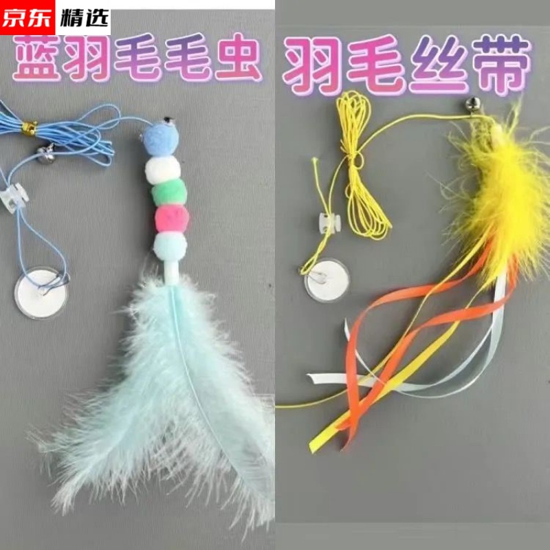 新型秋千逗猫玩具 悬挂式逗猫玩具小猫荡秋千逗猫棒挂门式猫咪自嗨解闷神器铃铛羽毛 【以下商品收藏关注优先发货】蓝 毛毛虫 羽毛丝带