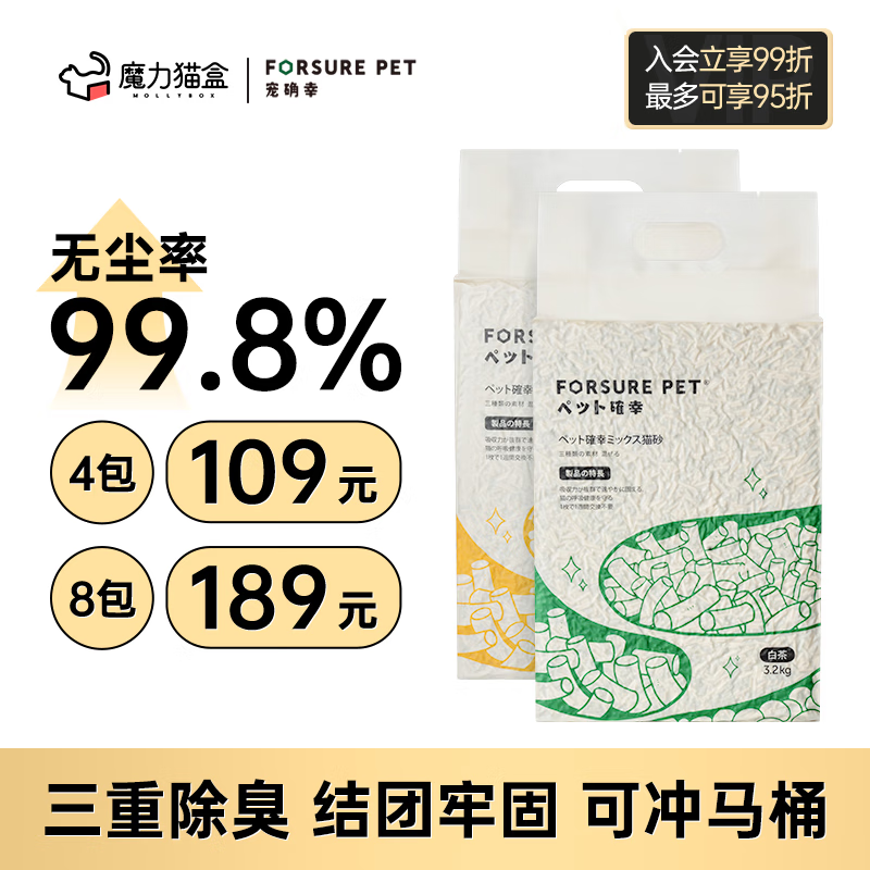 Forsure Pet 宠确幸白茶玉米混合豆腐猫砂无尘结团除臭可冲厕所猫砂3.2kg 白茶味 4包