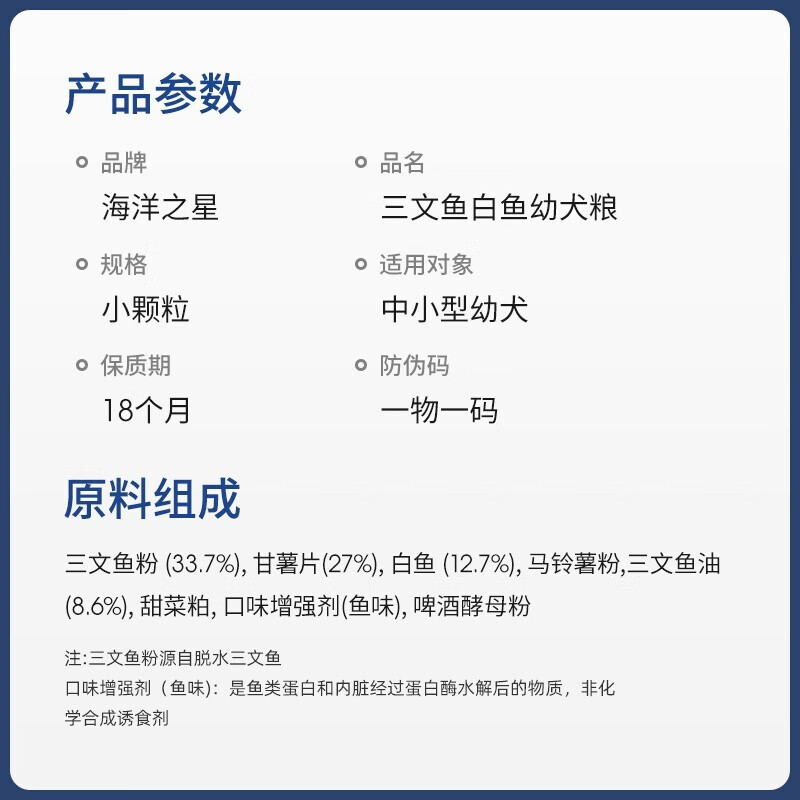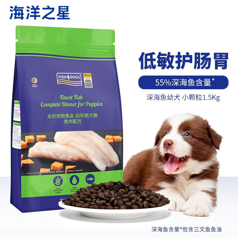 海洋之星深海三文鱼白鱼配方狗粮中小型犬幼犬粮天然无谷全价通用型狗粮 【幼犬】三文鱼白鱼小颗粒1.5kg