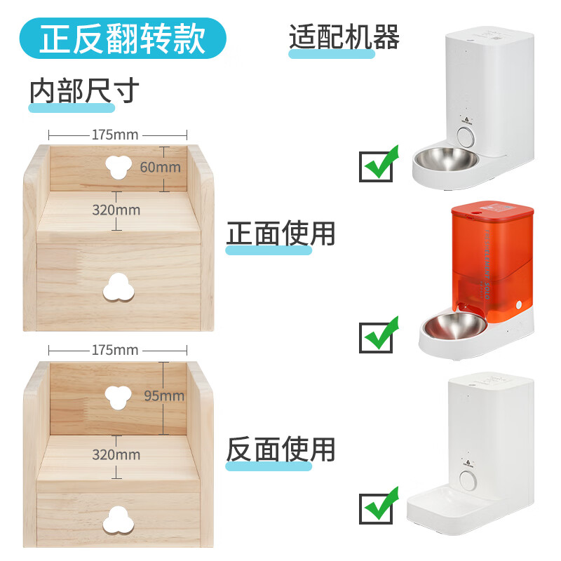 小佩mini自动喂食器架子solo喂食器猫狗投食机增高实木架 原木色不带抽屉款 可正反翻转使