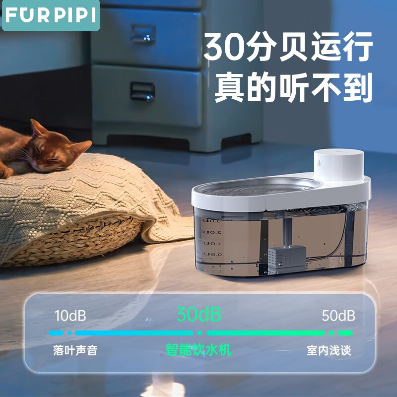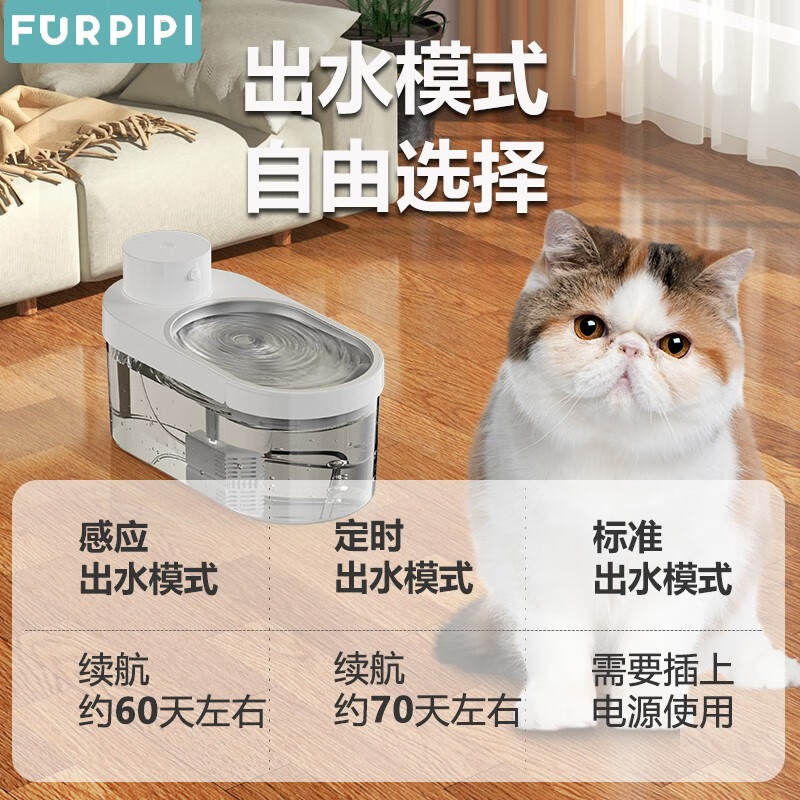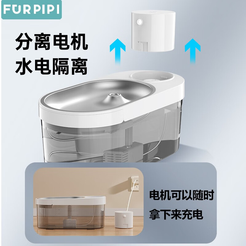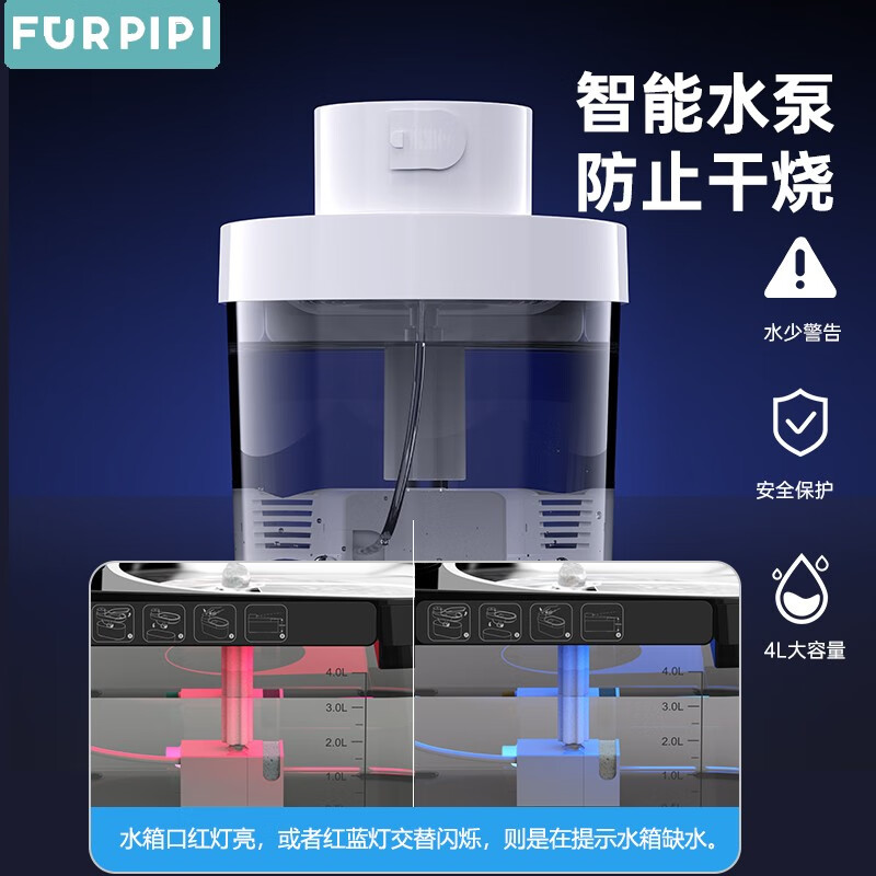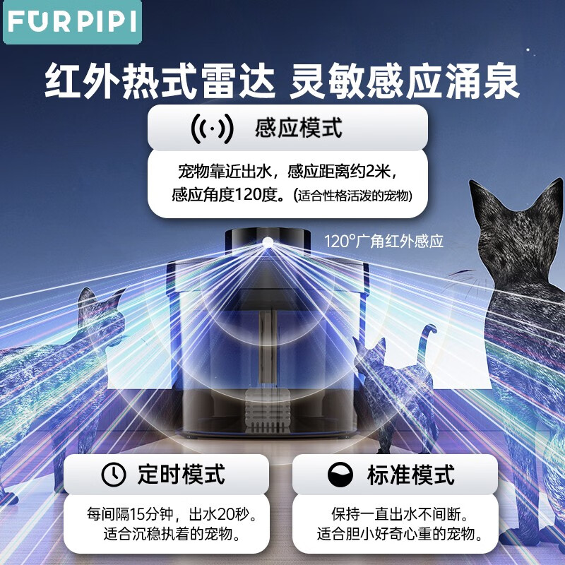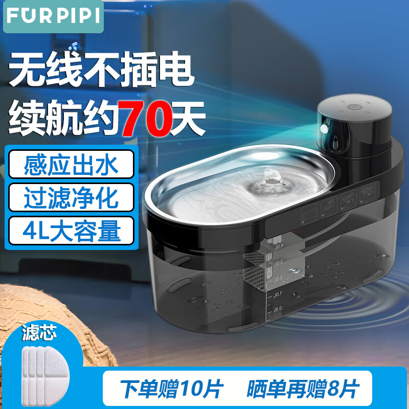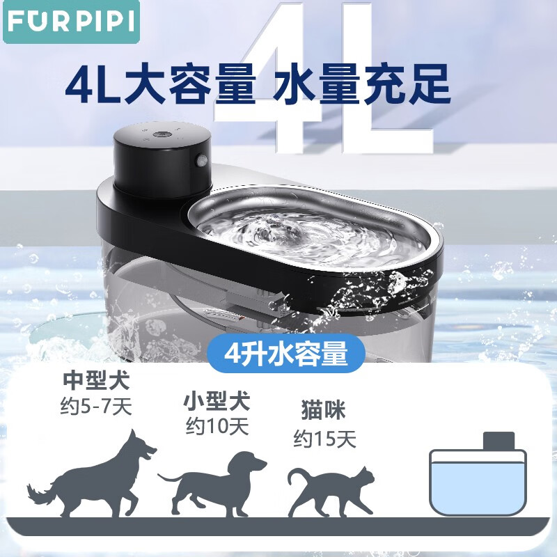 FURPIPI宠物猫咪饮水机不插电无线循环自动智能喂水器狗狗猫喝水器流动 黑色 暮黑色 4L容量 5000毫安