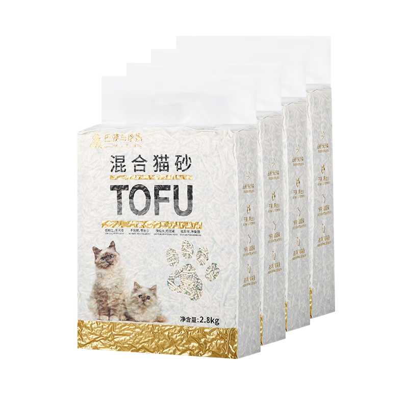 巴顿与珍妮 4合1豆腐膨润土混合猫砂 水晶除臭颗粒超强除臭结团牢固不粘底 4合1混合猫砂 2.8kg*5包