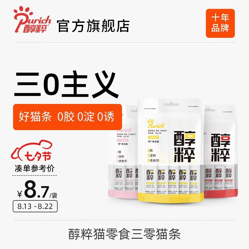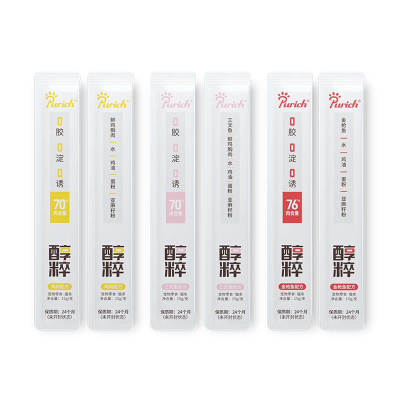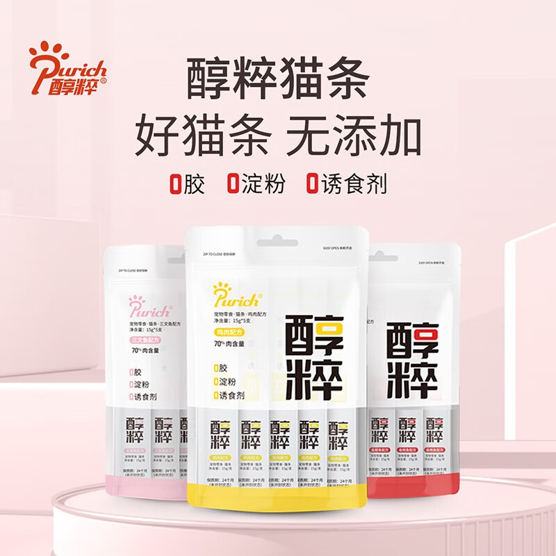 醇粹(Purich)猫条猫咪零食补水猫条幼猫无添加剂主食增肥发腮纯粹宠物猫舔条 3袋15支(15g*5支/袋) 三文鱼味