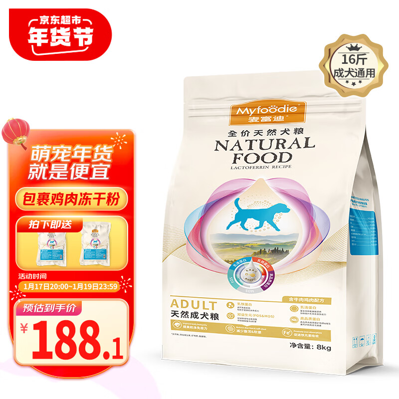麦富迪乳铁蛋白狗粮 泰迪萨摩耶博美通用型营养天然犬粮 成犬粮8kg
