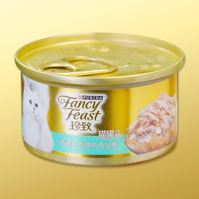 珍致(FancyFeast)猫罐头湿粮 泰国进口 精选金枪鱼肉及银鱼85g*24罐