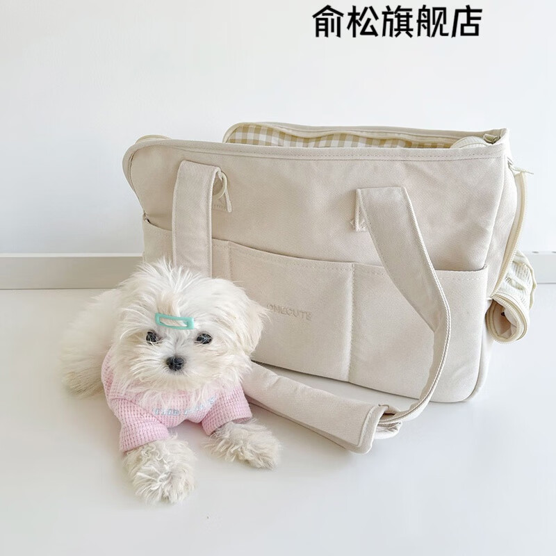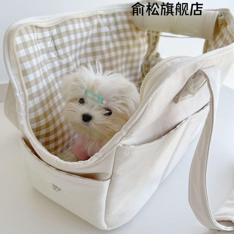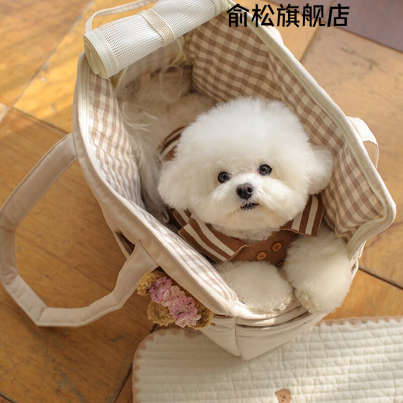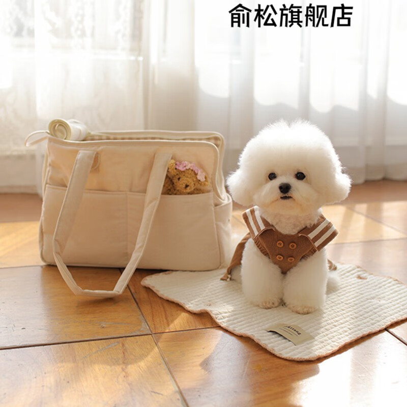 小狗出门包狗狗外出包包宠物便携拎包猫咪背包手提式猫包斜挎狗袋小狗包出门 米色包不含斜跨带(升级款) S适合8斤内宠物(37*17*25cm)