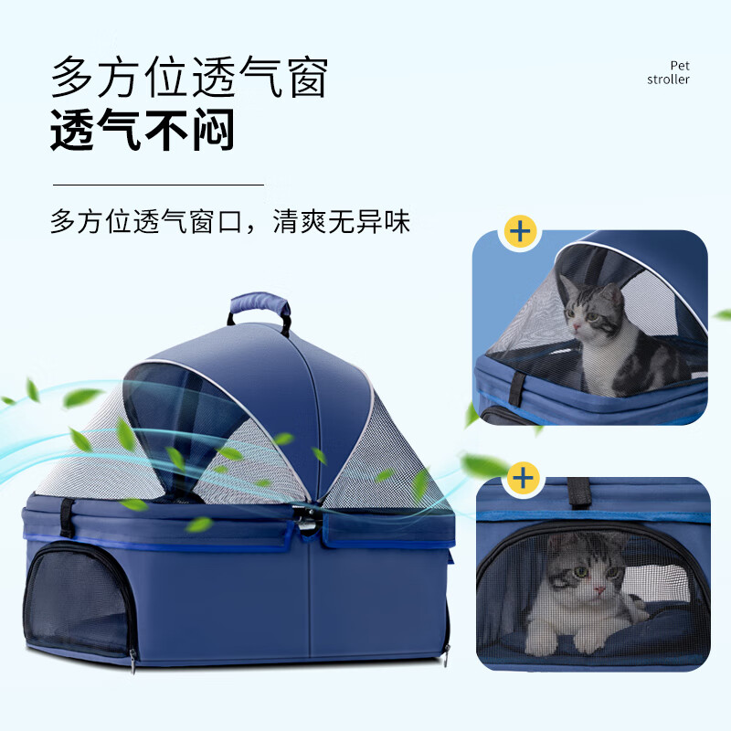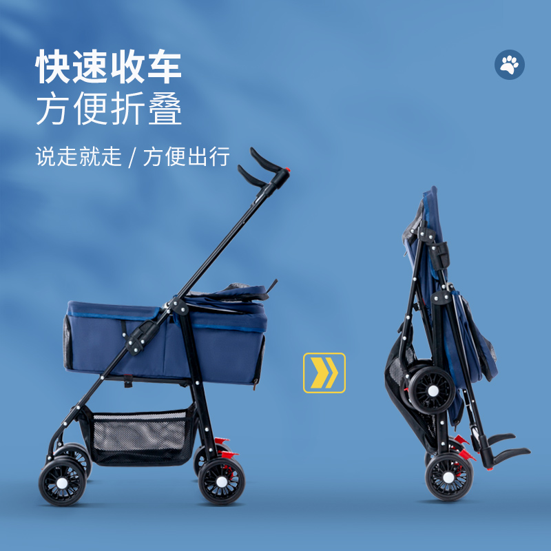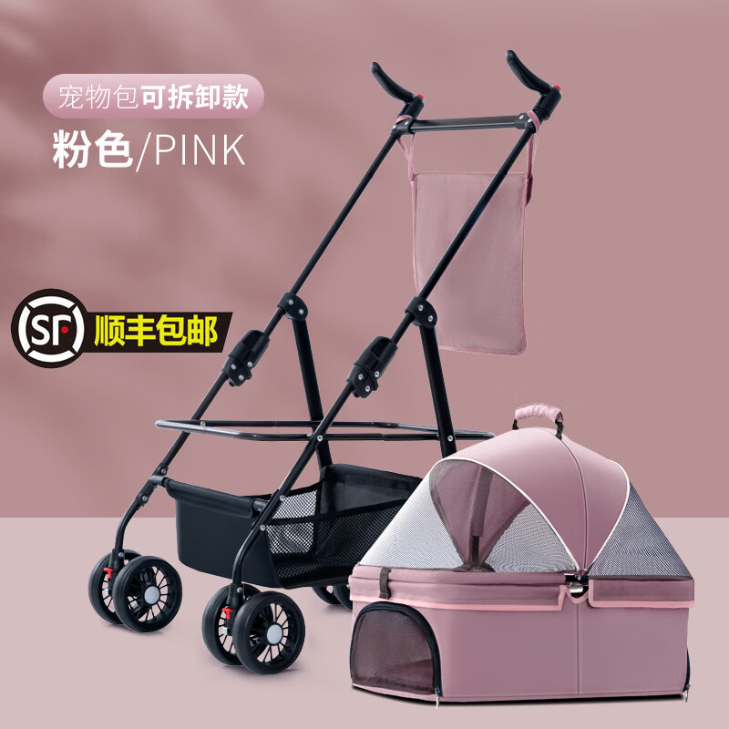 宠哈佩特宠物推车狗狗猫咪泰迪婴手推车外出小型宠物狗车轻便可分离笼折叠 W01粉色(可分离-提篮