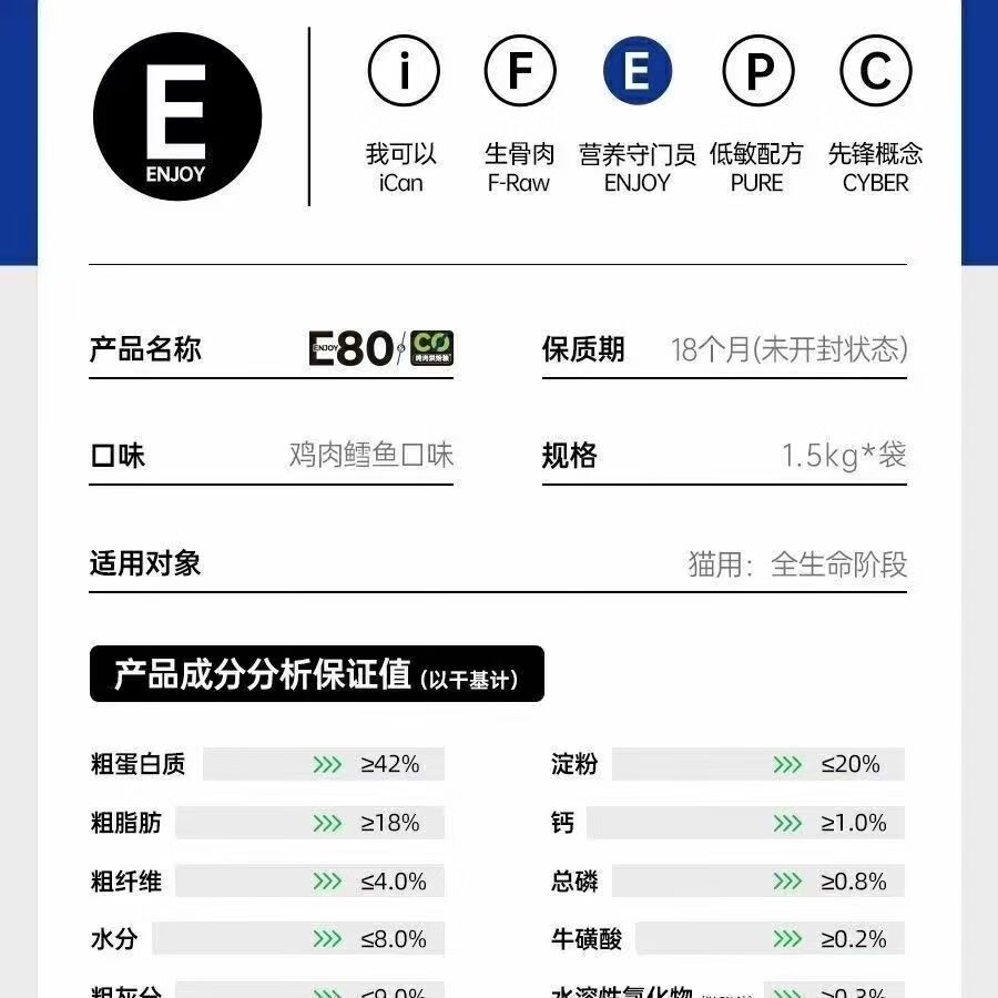 阿飞和巴弟E80C烘焙猫粮1.5/8kg鸡肉鳕鱼配方高肉增肥发腮通用 正装8kg