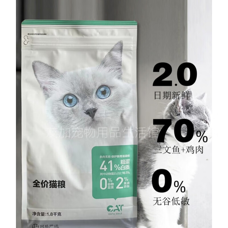 网易严选猫粮 幼猫成猫通用阶段增肥发腮英短无谷干粮1.8kg/袋 -鱼肉味2.0配方1.8kg 1 袋 1.8kg