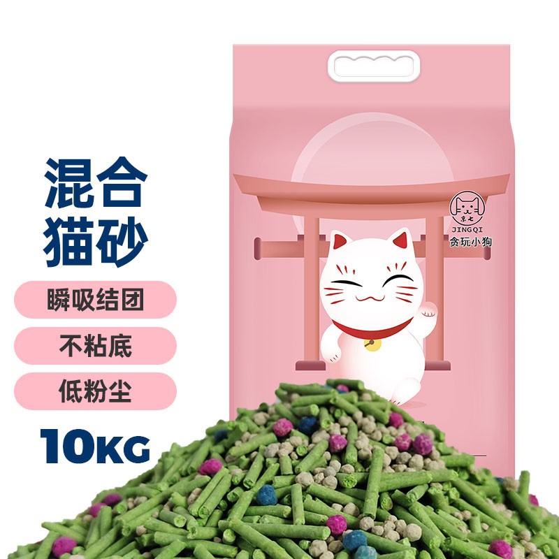 贪玩小狗膨润土猫砂10kg豆腐猫砂混合猫砂20斤低尘除臭冲厕所快速吸水结团十公斤猫沙 绿茶混合猫砂10kg(20斤装)