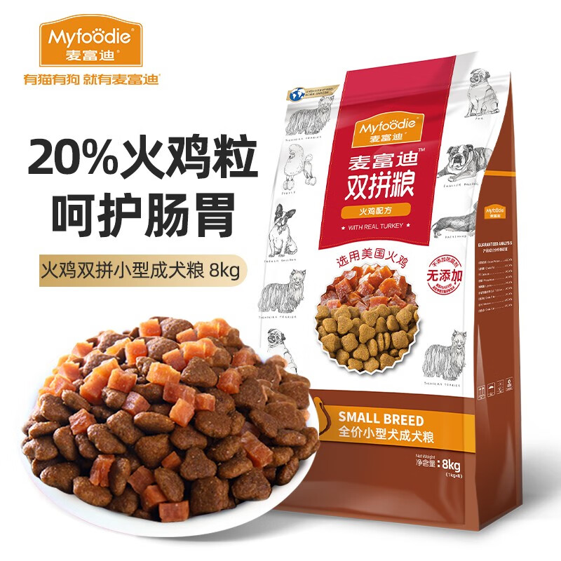 【品牌旗舰店】麦富迪 狗粮 火鸡双拼小型犬成犬粮 小型成犬粮 8kg